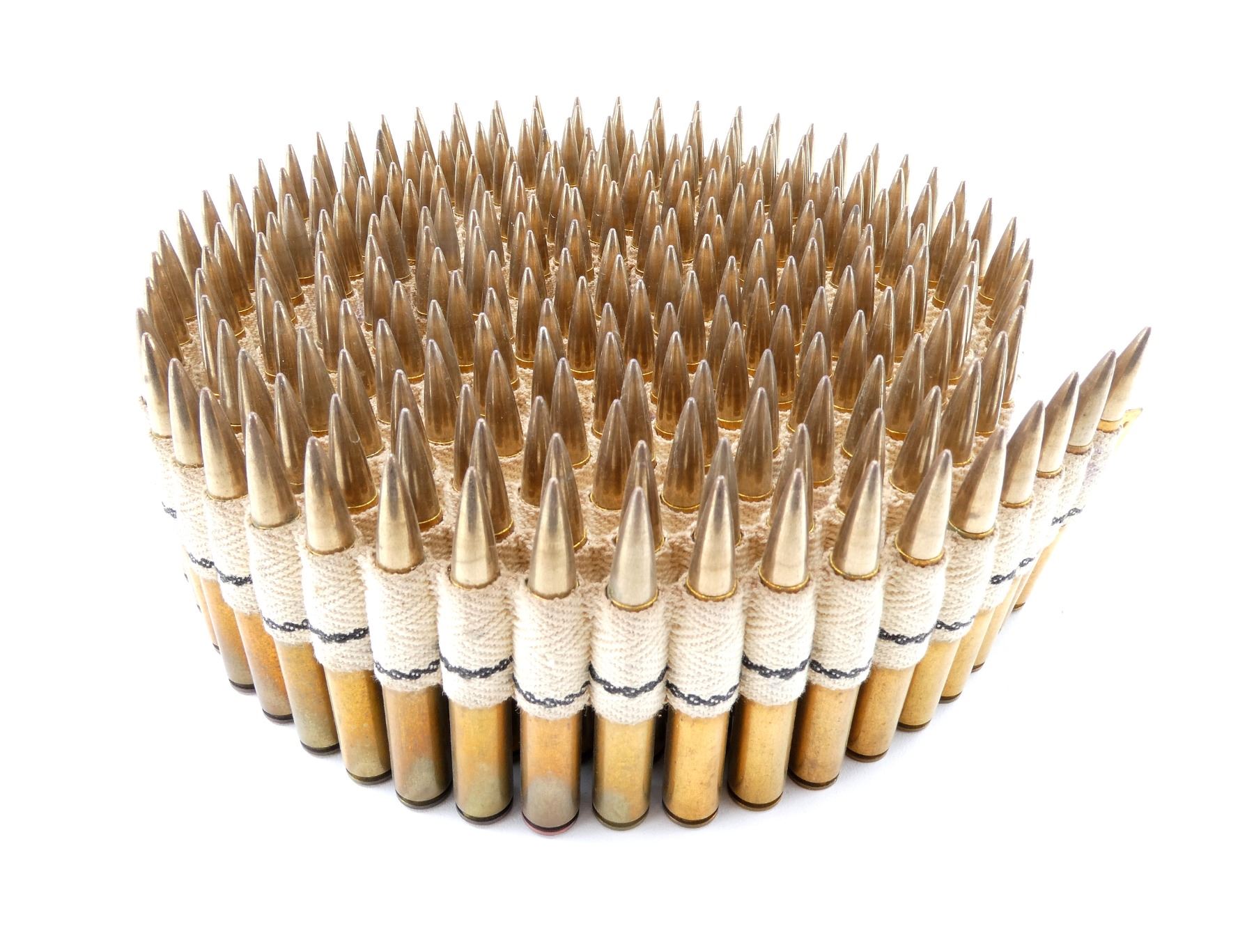 LOT INCLUDES; APPROX. (249) RNDS, FMJ, ON BROWNING 1919 MACHINE GUN CLOTH BELT, APPROX. OVERALL LENGTH 139", SEE PHOTOS.
