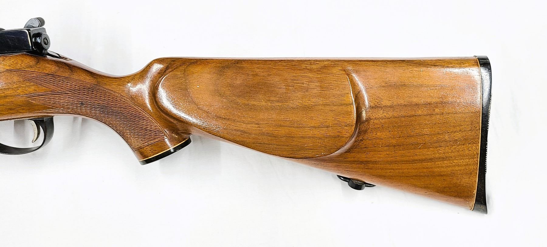 Nice French walnut stock with cheek piece and forearm cap and nice cut checkering.