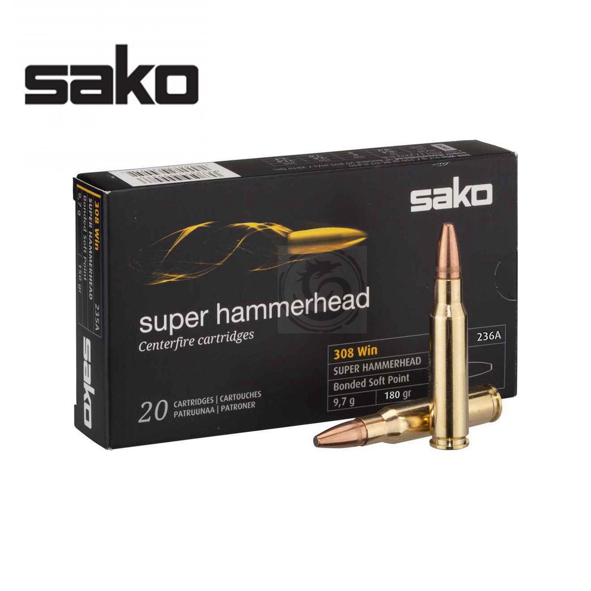 Sako Super Hammerhead 308 Win. 180 Grain Bonded Soft Point (20 Rounds). This listing is for one brand new, unopened, factory sealed unit. UPC: 190019039372.