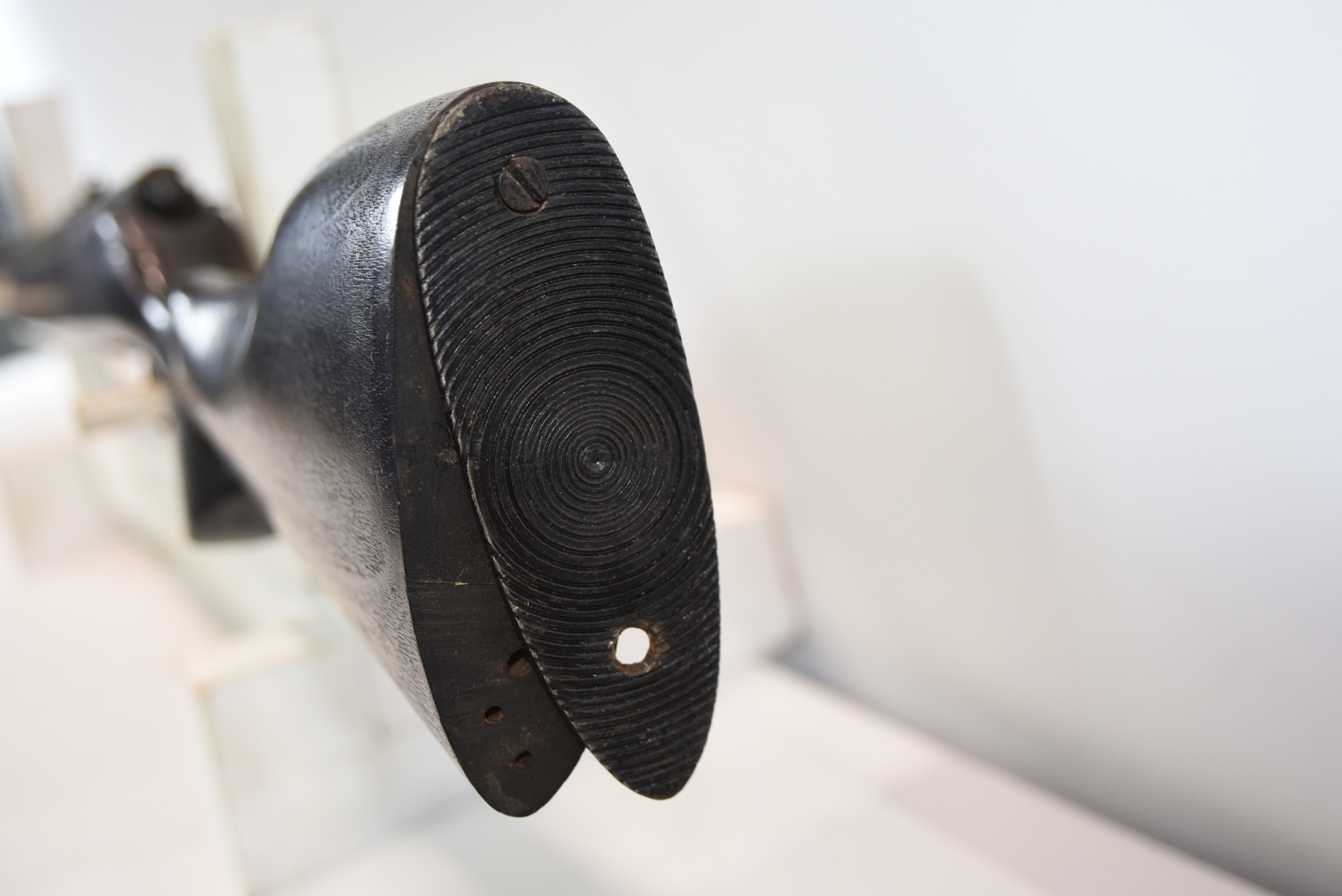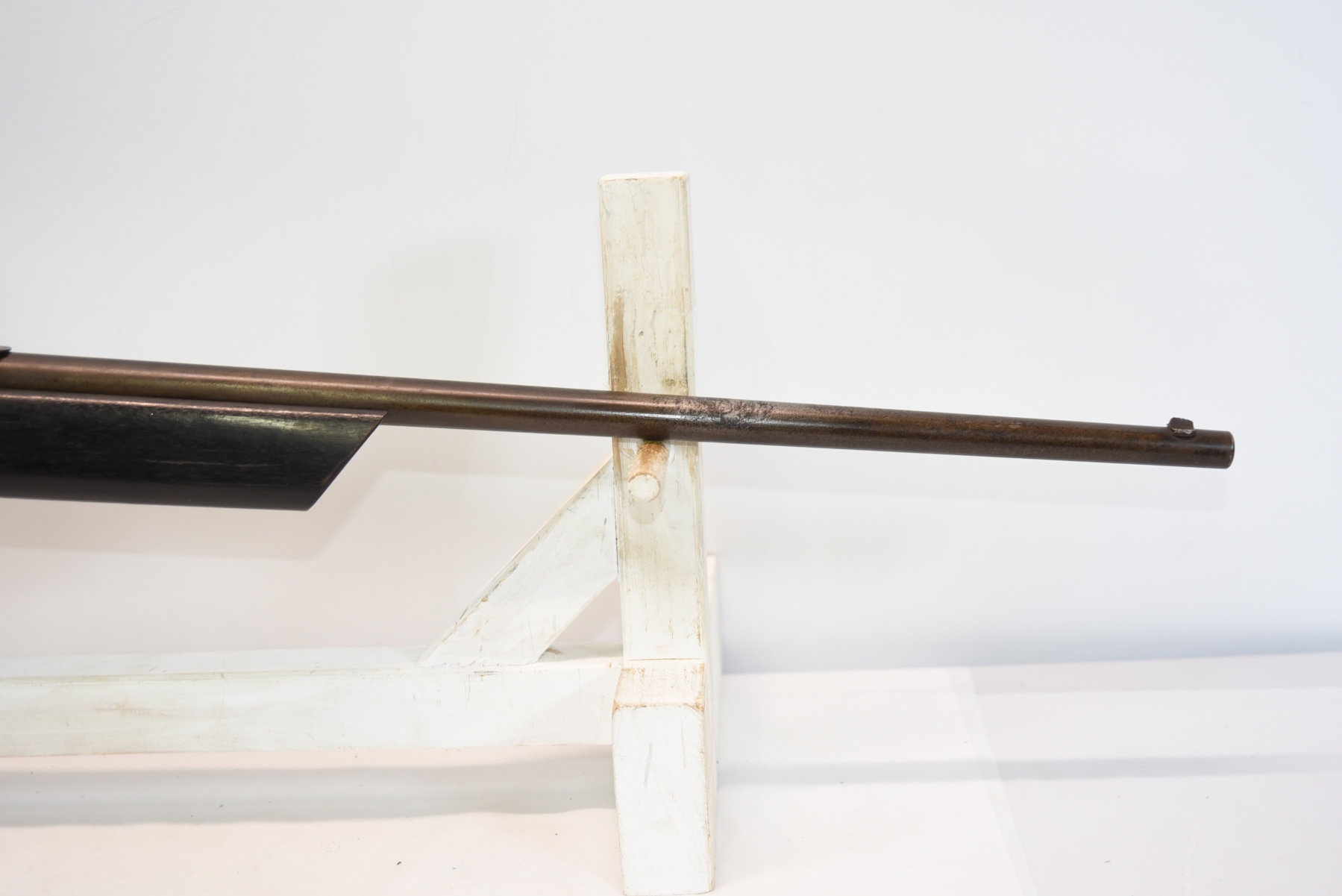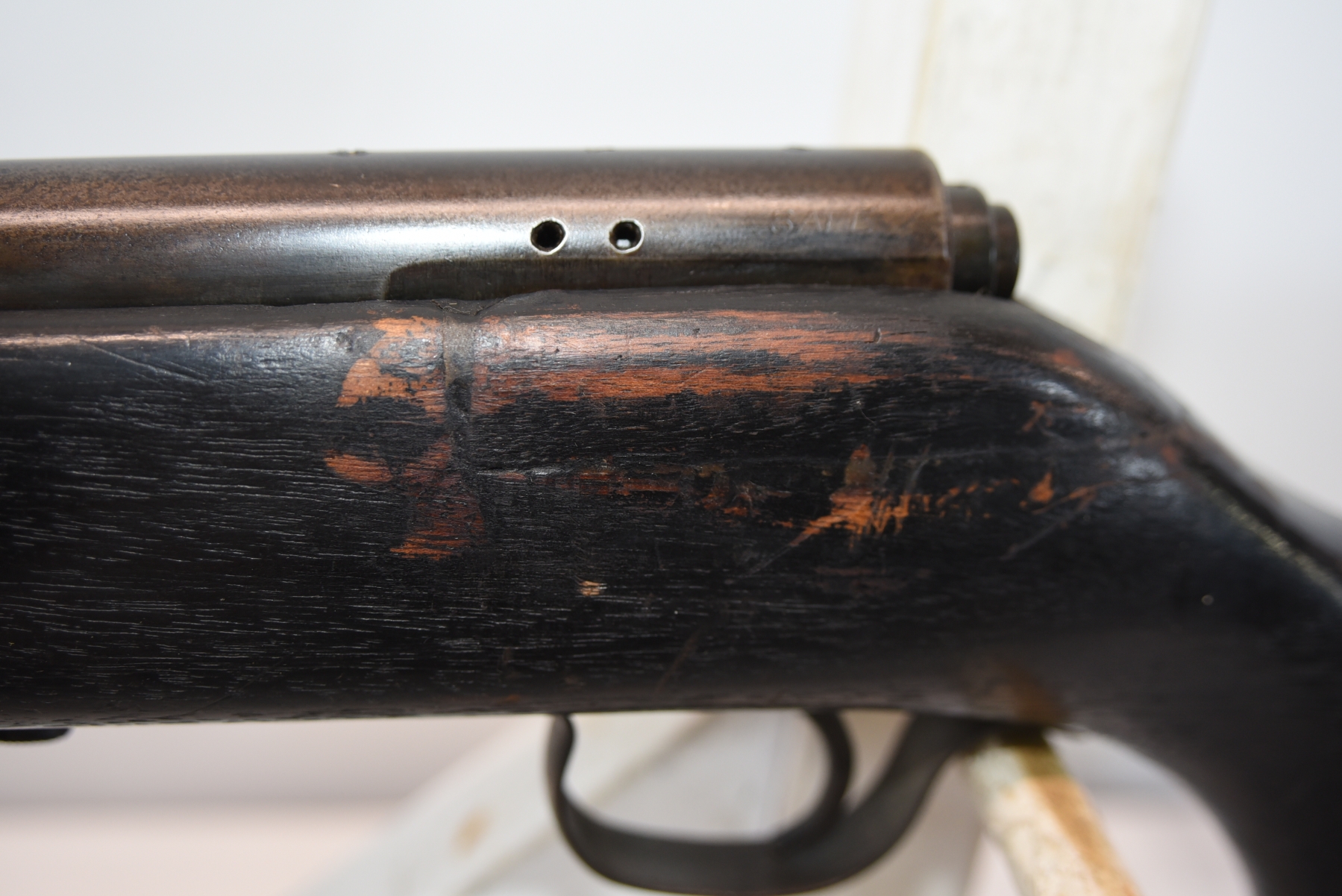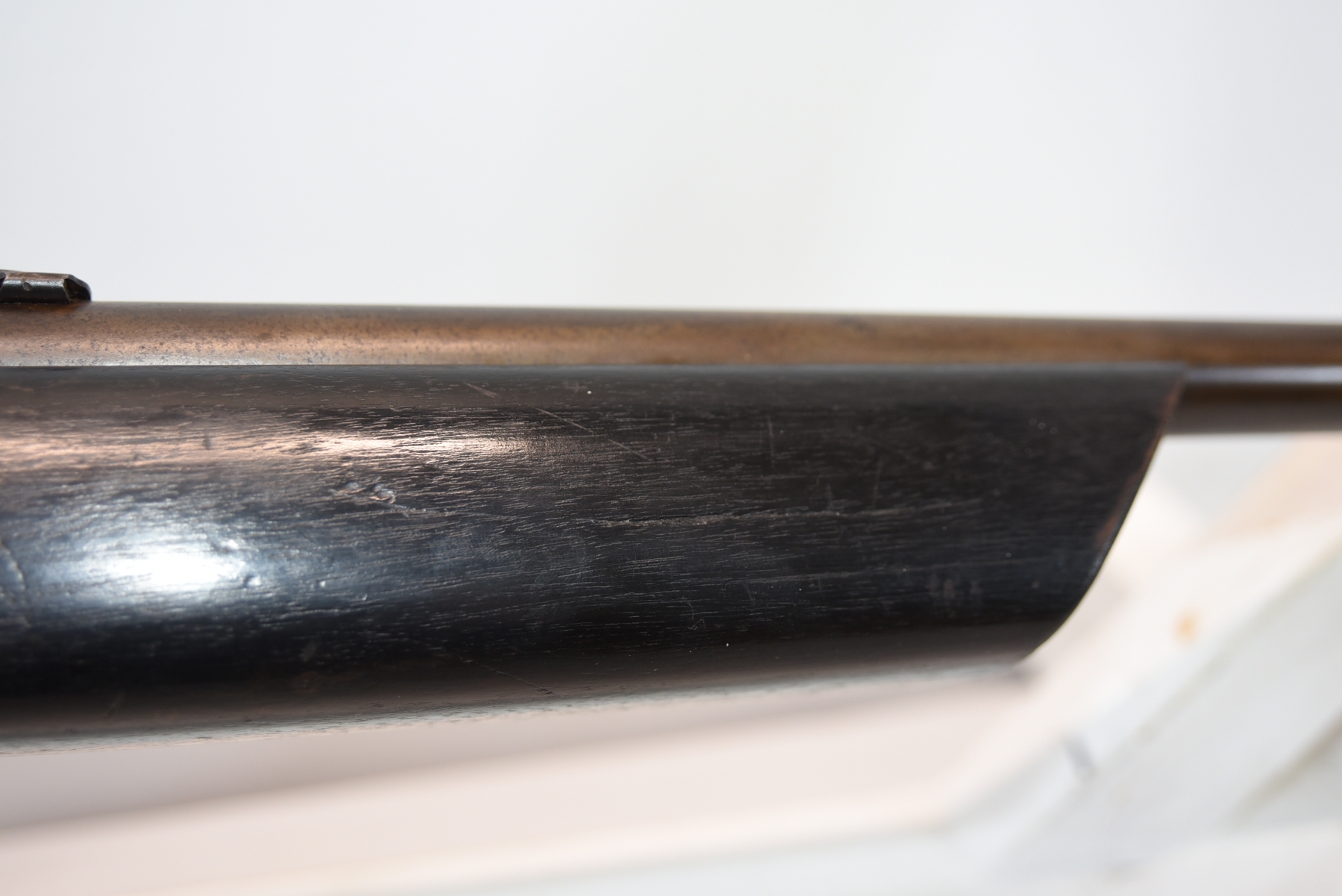 Wood stock shows scratches, scuffs, loose butt plate, modified stock; condition is less than fair.