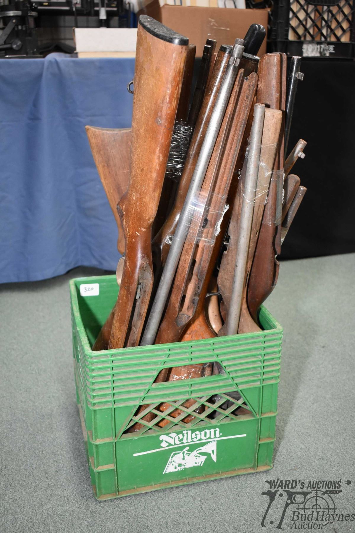 Selection of parcial gun parts including .22 barrels in single and repeater shot and matching wood for most. Note: Pal required