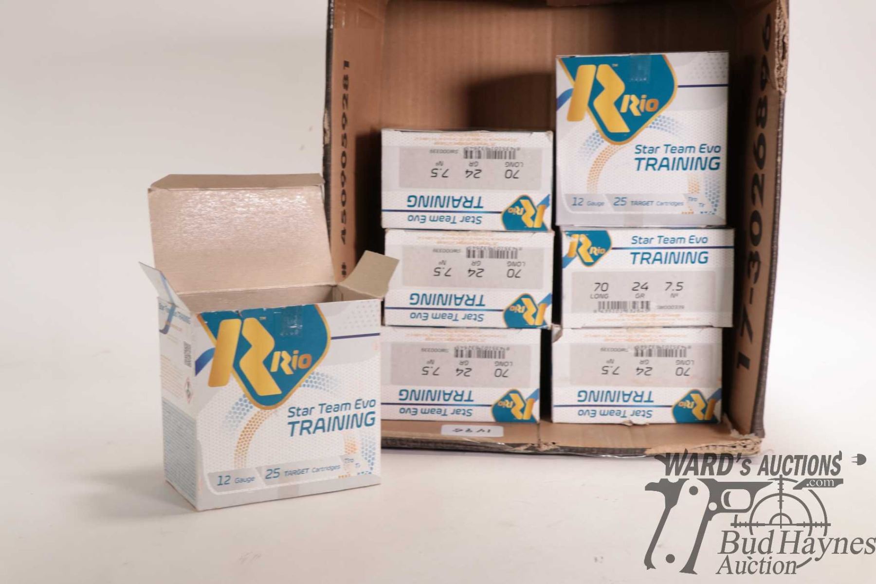 Six full 25 count boxes an done partial 10 count box of Rio Star Team Evo Training 12ga 2-3/4" n/o 7.5