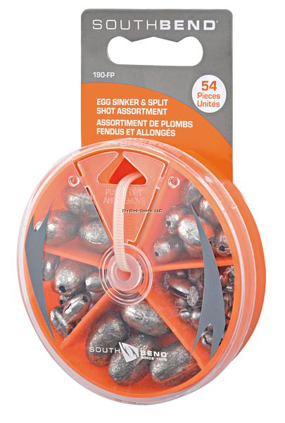 South Bend 190-FP Egg Sinker & Split Shot Assortment w/Dial Box. This listing is for one brand new, unopened, factory sealed unit. UPC: 39364172146.