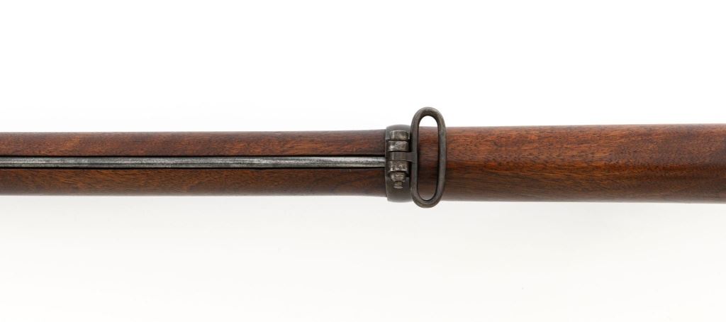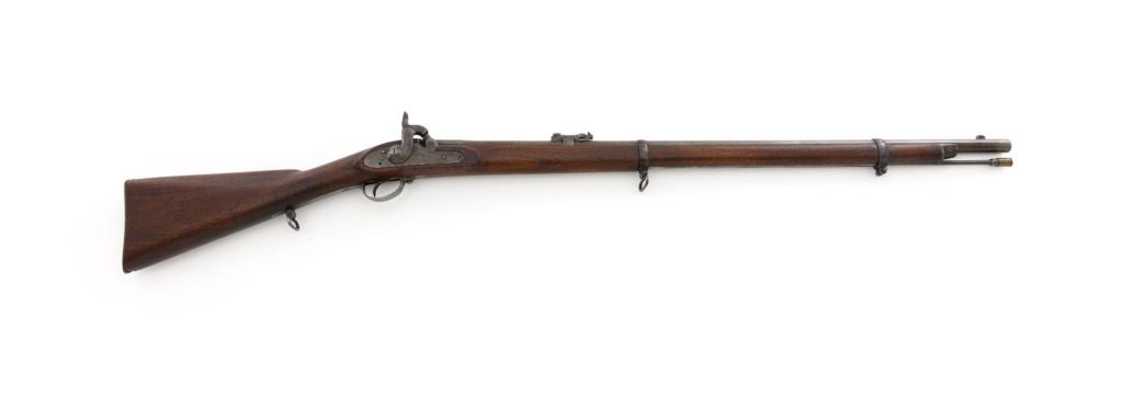Spanish Modelo 1857/59 Percussion Rifle "Madrid 1861", #138 (stamped at rear of lockplate) and on right side of buttstock; approx. .577 cal., 33" round barrel with majority of browned finish remaining on metal surfaces (80%-85%); two barrel bands with front band missing sling loop; steel ramrod, full-length wood stock. Lockplate displays "(crown)/Madrid/1861". Rear flip-up adjustable sight is tight and functioning nicely. Wood stock is overall very good to near fine with the most noticeable blemish being a chip at the toe. Action is crisp and strong, bore is dark but clear. According to several Civil War sources, this was the type of muzzleloading rifle imported out of Cuba by the Confederacy in style and composition. Written articles by knowledgeable Civil War collectors also note that the "(crown)/Madrid/1861"-marked rifles under serial #500 are known to have been imported from Cuba and used by members of the Confederate States Kentucky "Orphan" brigade. One such source interestingly noted evidence for a Kentucky connection, in particular for these rifles that they may have been privately purchased by the regimental commander, but there is an even stronger Spanish connection through Brig. Com. William Preston who was on his way home to Kentucky from his post as ambassador in Madrid when the war broke out and he was asked by C. S. authorities to acquire Spanish arms or at least set up contacts. Also, there is reporting that some Spanish arms were actually offered to the Confederacy at an early date according to a letter from two arms dealers in Cuba (a Spanish possession at the time) who had been engaged in May 1861 to look for military supplies by C. S. Chief of Ordnance Josiah Gorgas with the forwarding of a list of available items, with prices, to a CS purchasing agent. These 1861-dated and low serial numbered Spanish percussion rifles are incredibly rare and would make a great addition to any Confederate Arms Collection or display related to Kentucky Civil War units. Est.: $1,800-$2,400. (Antique)