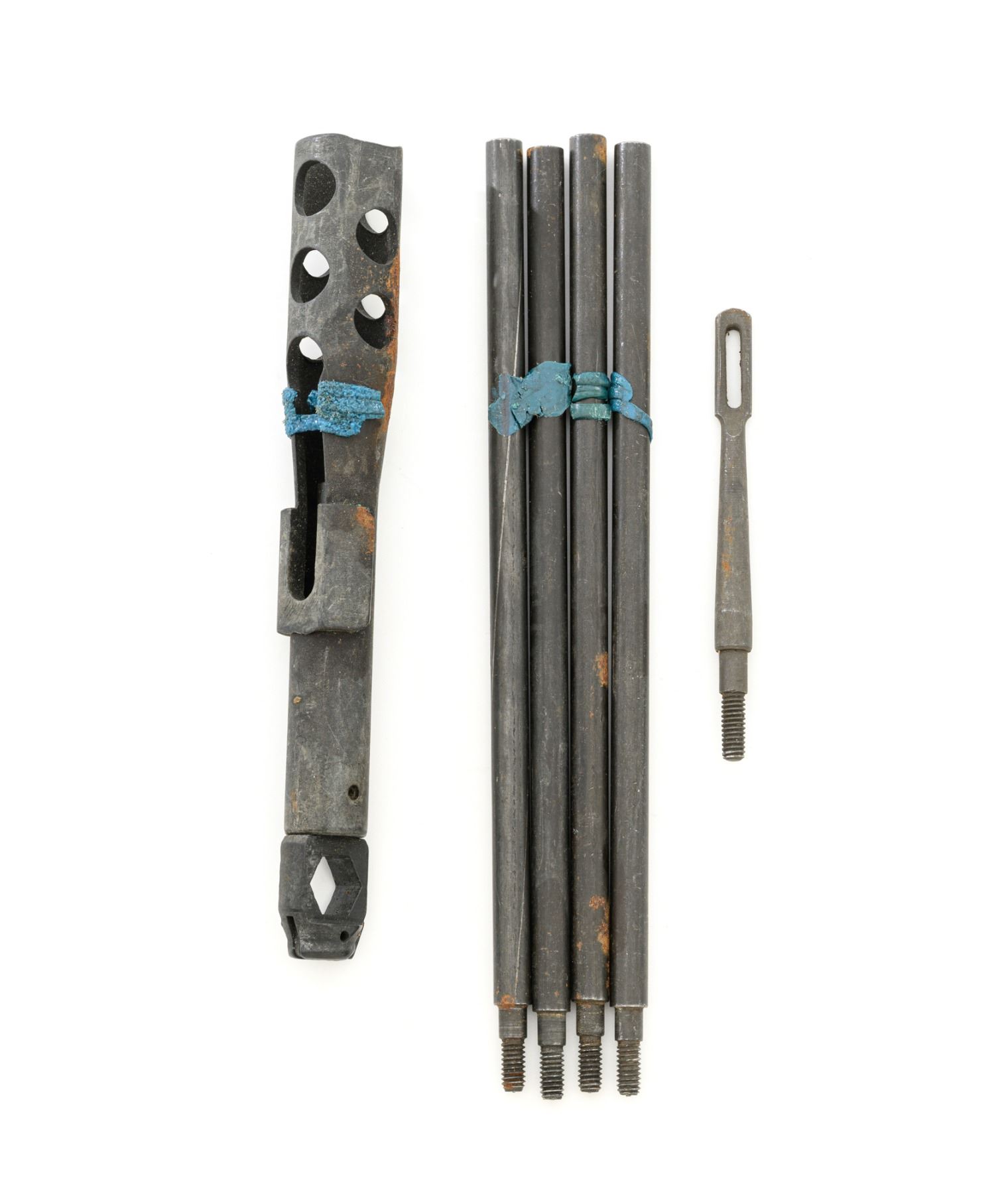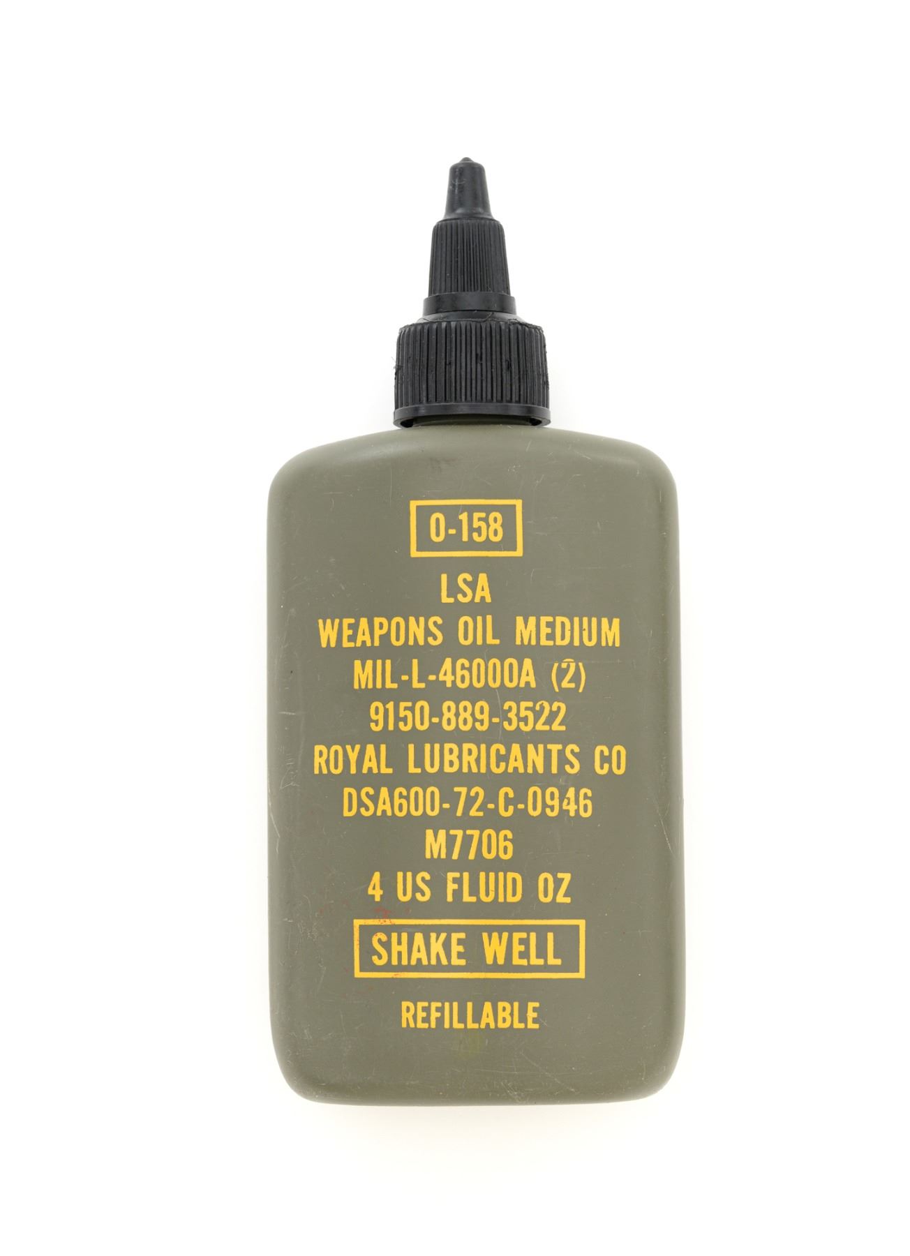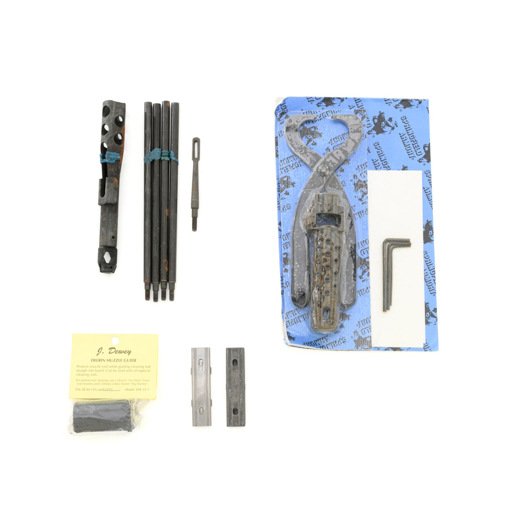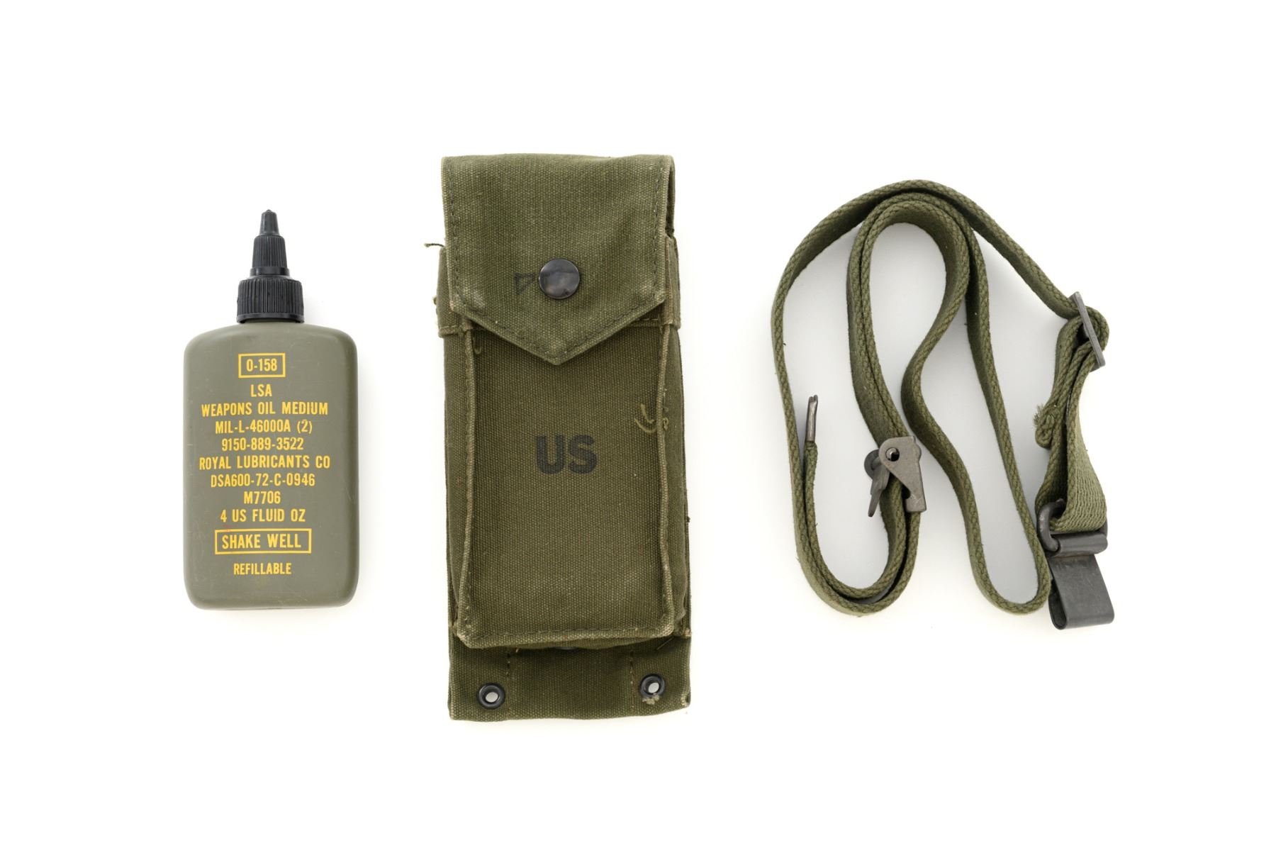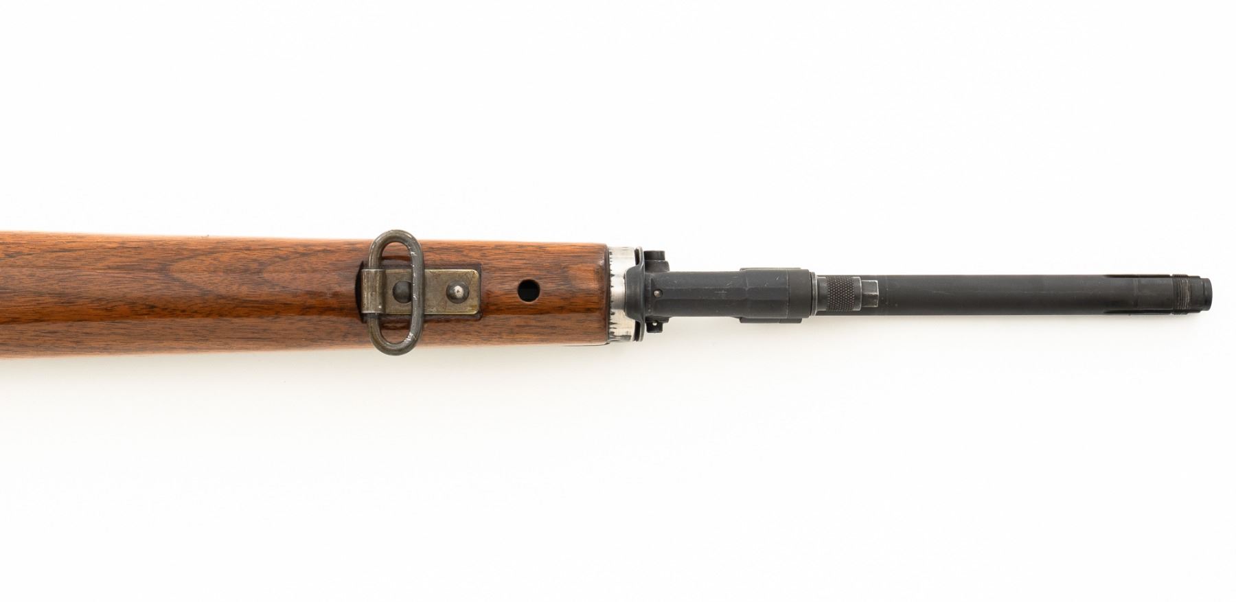 Springfield Armory M1A Semi-Automatic Rifle, #003268, 7.62x51mm cal, 22" threaded barrel without muzzle brake, parkerized finish, walnut stock with fiberglass handguard, no front sight, with hooded aperture rear sight, marked "NM", adjustable for windage and elevation. There is no magazine. Includes a U.S. M1 green cotton sling, U.S.M.C. single magazine pouch, bottle of LSA lubricant, combination tool, four-piece M-10 steel cleaning rod with tip, muzzle guide, rear sight cover, and two (2) stripper clips. Rifle is marked "U.S.RIFLE/7.62 mm M1A/SPRINGFIELD/ARMORY/003268" on rear receiver tang. Barrel is marked "SAK-7791362-11-73-8095943". Metal rates excellent and retains approx. 95% parkerized finish, with wear to the gas adjustment knob. Stock is very good, with an added coat of varnish, scattered moderate scratches and handling marks. There is a range scale attached to the left side buttstock. Handguard has a chip to the left rear. Action operates smoothly. Bore is bright with very good, clearly defined rifling. Est.: $1,000-$1,500. (Modern)