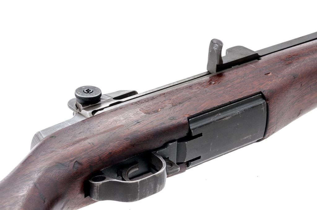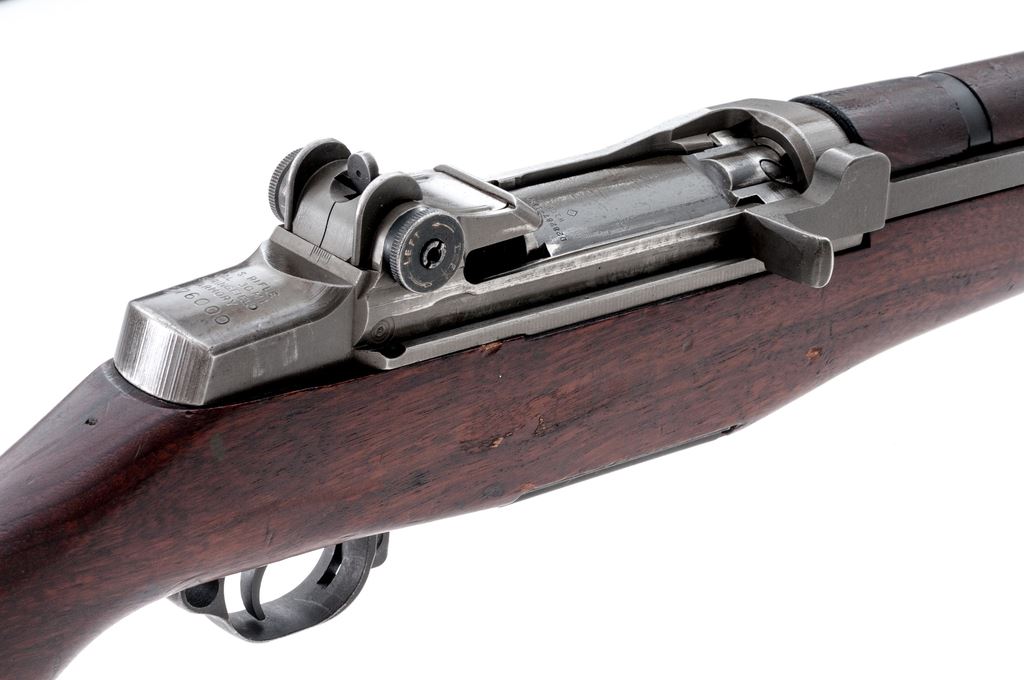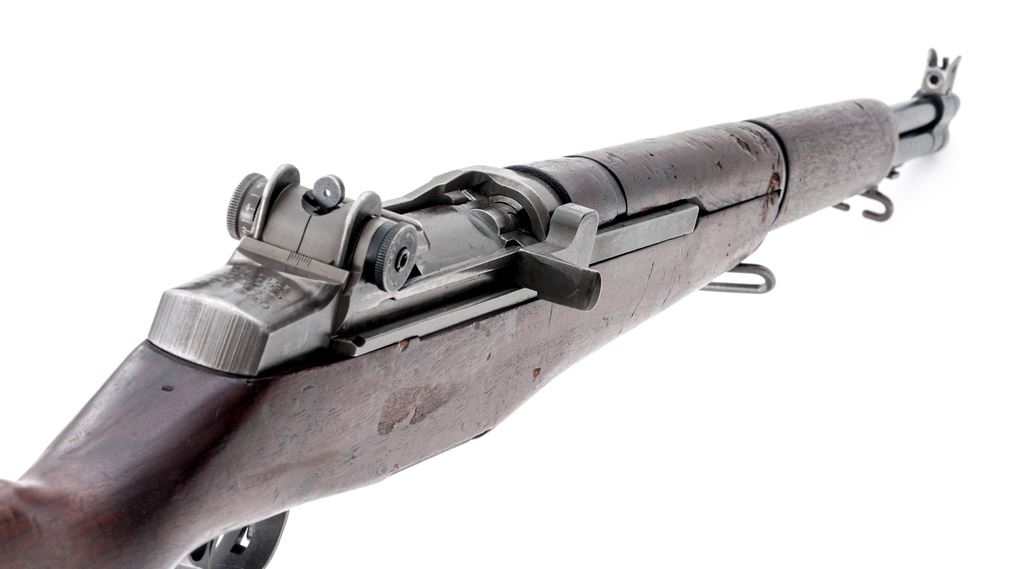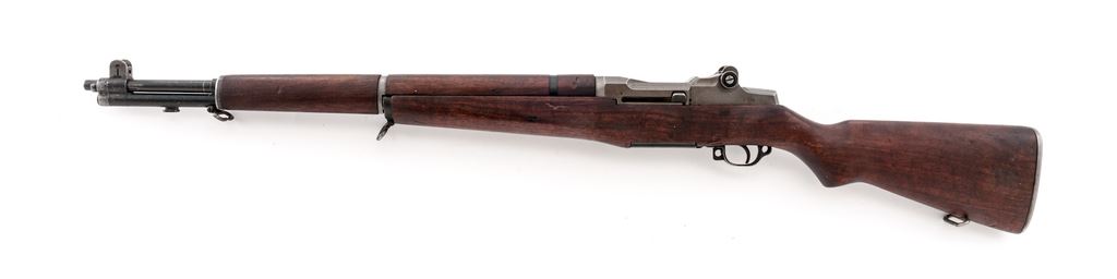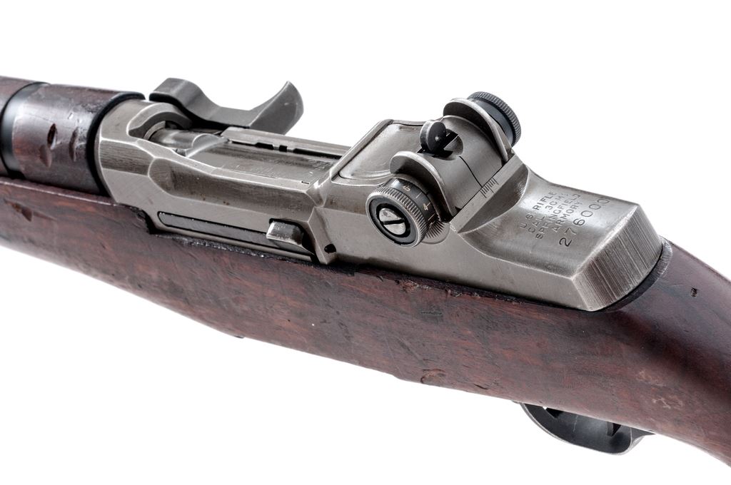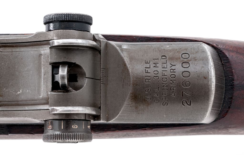 Springfield M1 Garand Semi-Automatic Rifle, #276000, .30-06 cal., 24'' barrel, parkerized finish, walnut stock, blade front sight with protectors and adjustable aperture rear sight, and M-10 cleaning rod, combination tool and plastic oiler. Marked on receiver tang ''U.S.RIFLE CAL..30 M1 SPRINGFIELD ARMORY'', and on right side of barrel ''S-A-10-50''. There is a yellow painted ''62'' rack number on the bottom of the pistol grip. Bolt, trigger housing, and trigger are all marked ''SA''; operating rod is marked ''HRA''. Condition overall is very good with metal surfaces retaining approx. 90% finish. Wood shows a number of deep bruises, probably from being stored in a crate with other rifles, otherwise good with an even overall color. Action is smooth, bright bore is very good with very good rifling. No visible import marks. Est.: $1,000-$1,500. (C&R)
