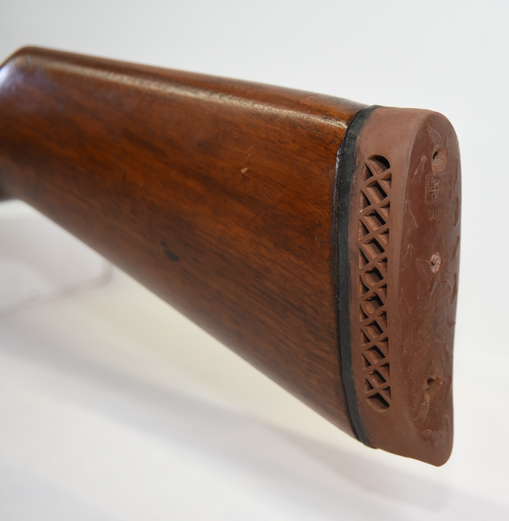 Wood stock shows lots of scratches, scuffs, light dents; condition is good.