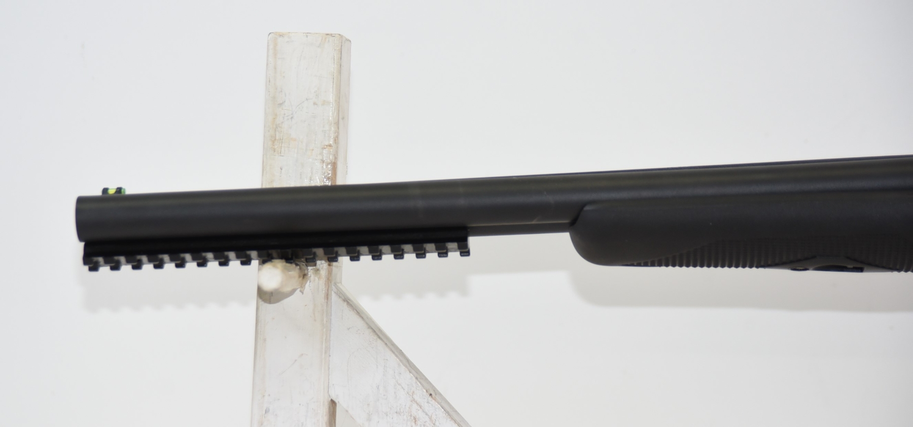 Synthetic stock shows few light scratches, scuffs; condition is very good.