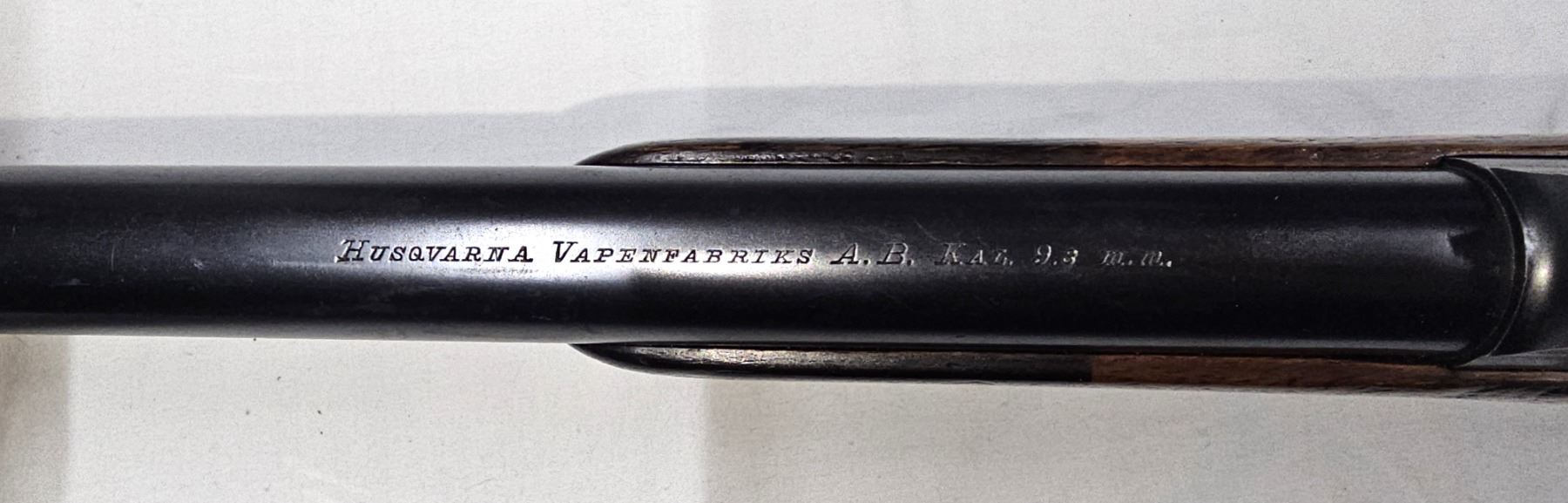 plate still have Crown stamp. Barrel has Husqvarna Vapenfabrik A B Kal 9.3 mm stamped