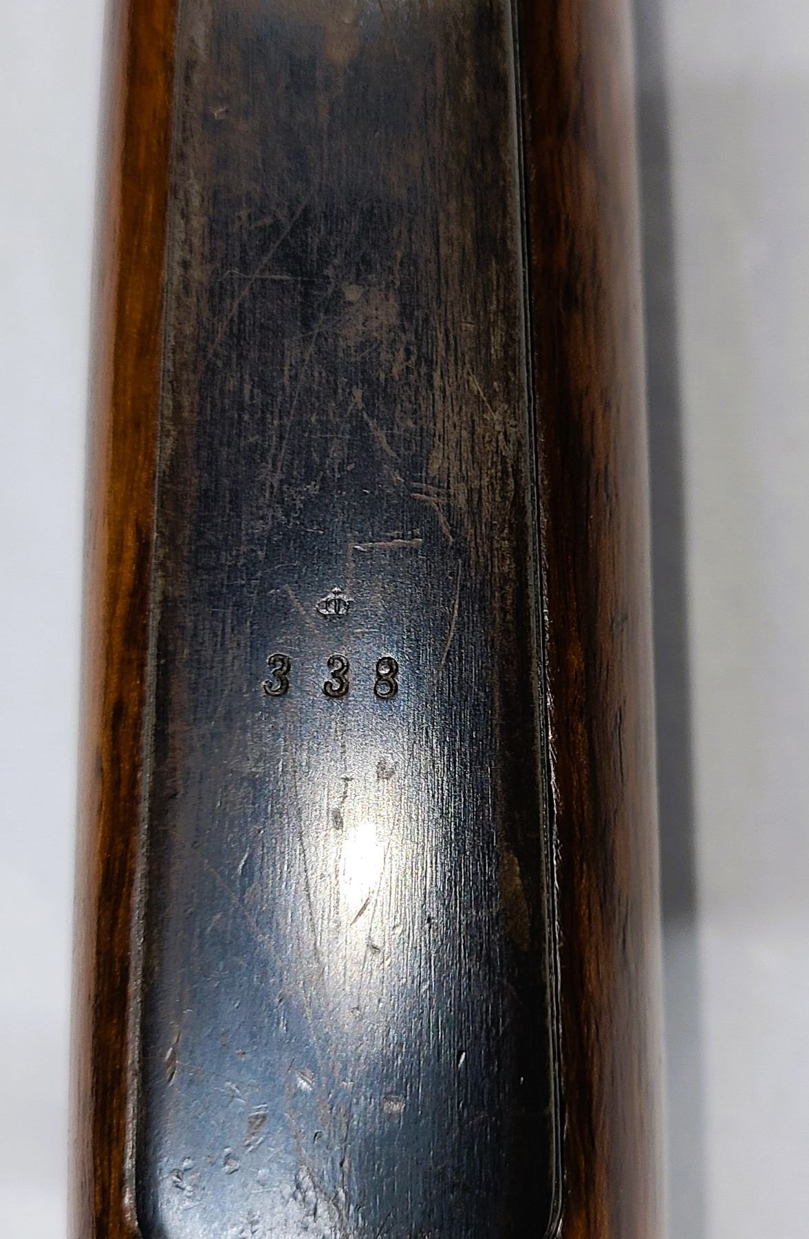 and steel buttplate. There are scratches and pressure dents throughout and may have been refinished.