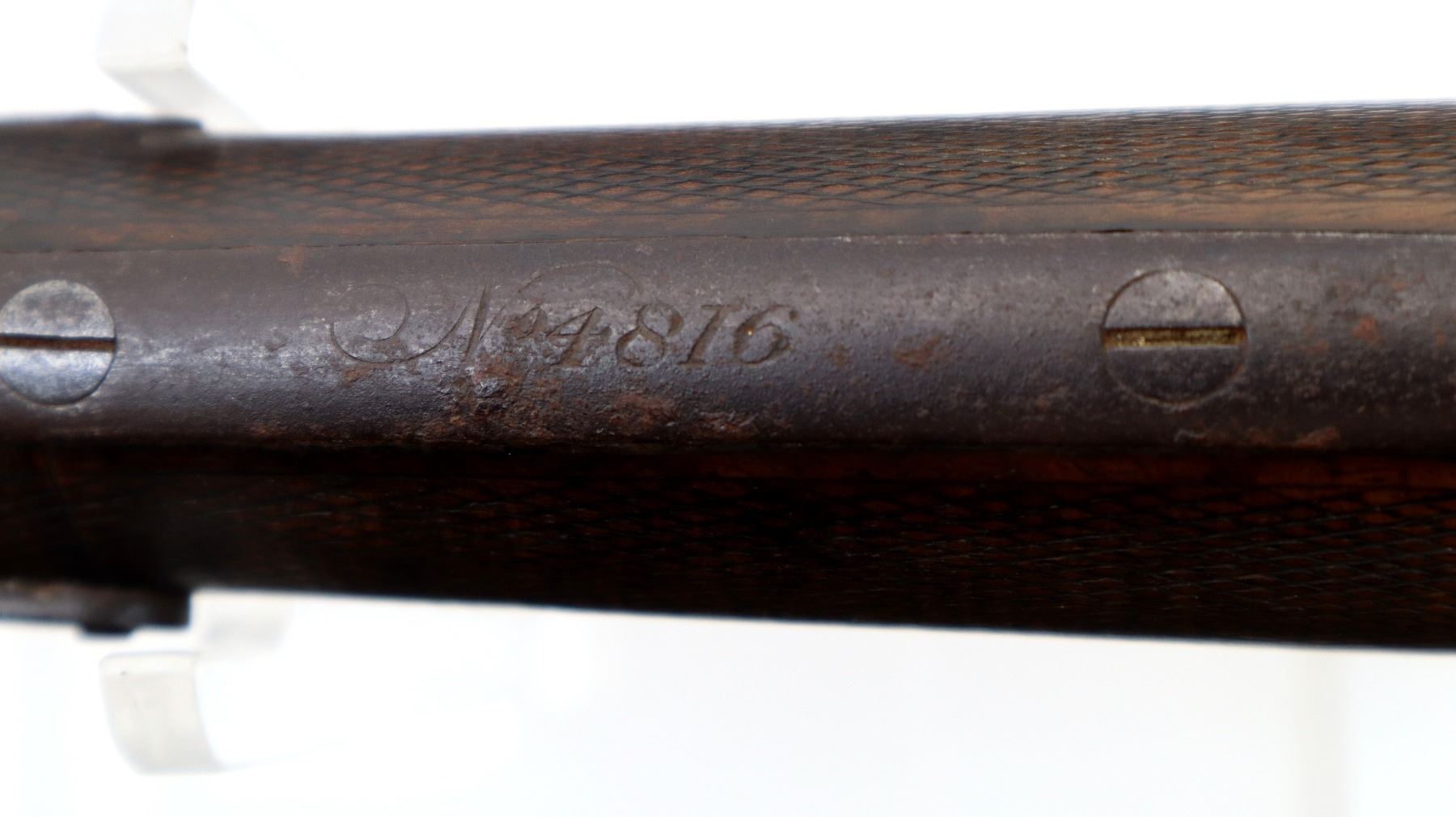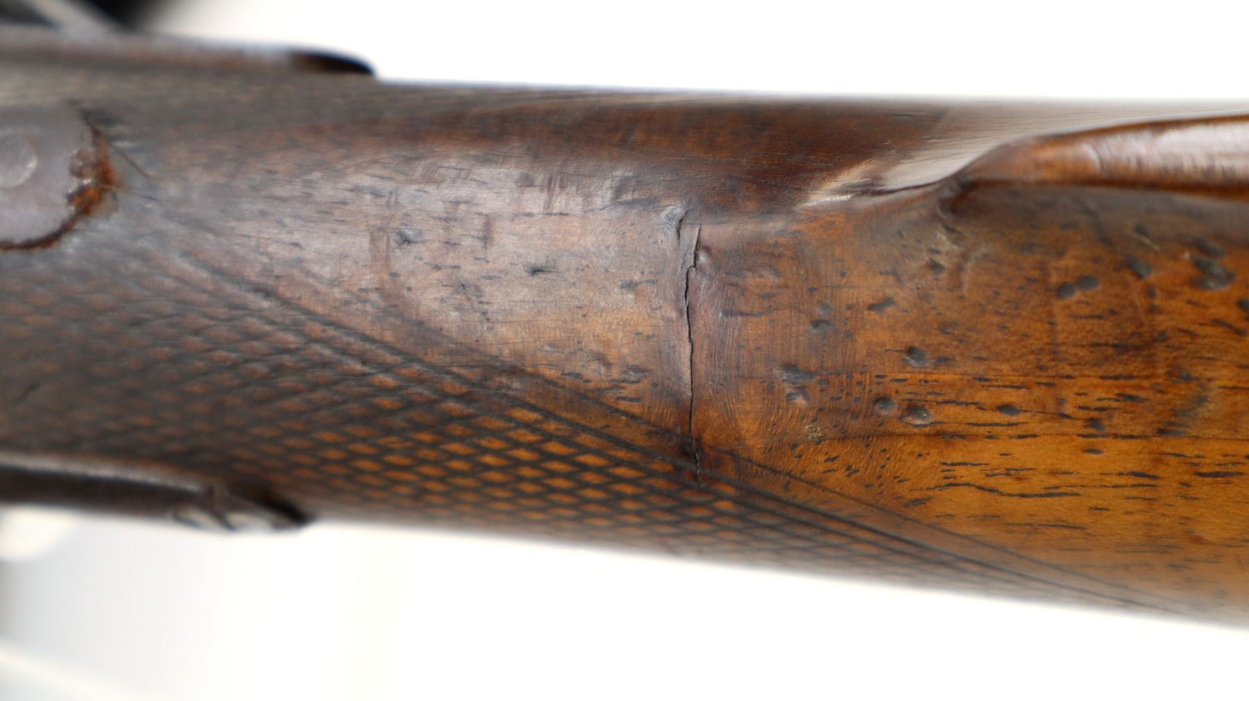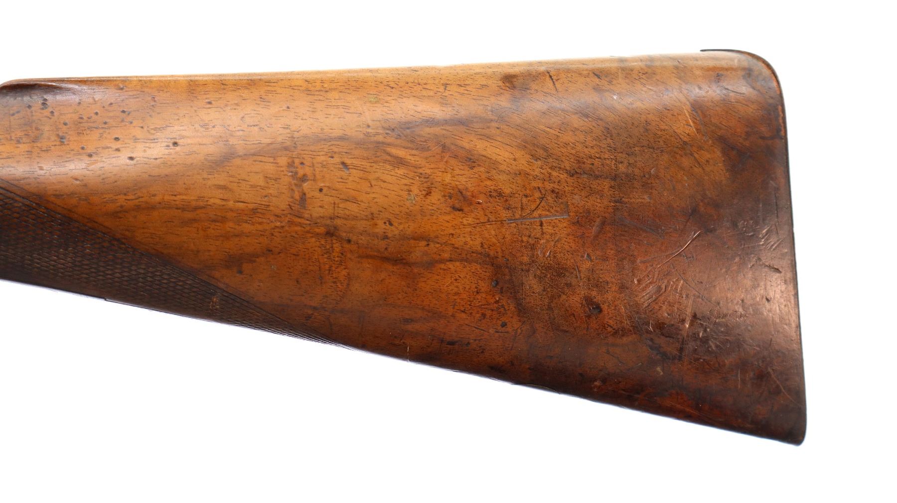 Wear: Metal finish turning brown with pitting, light rust, scratches, handling marks and wear. Stocks show marks, scratches and wear.