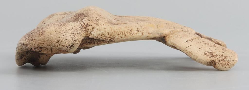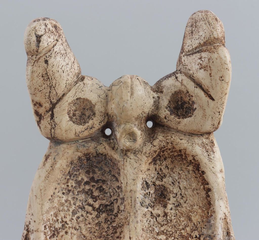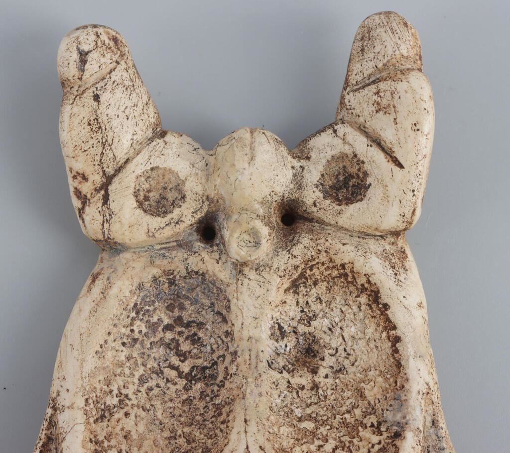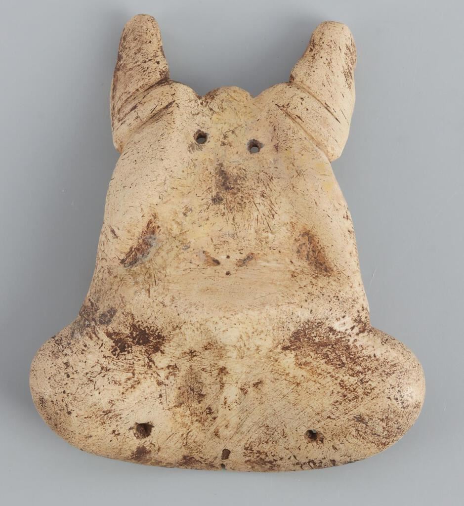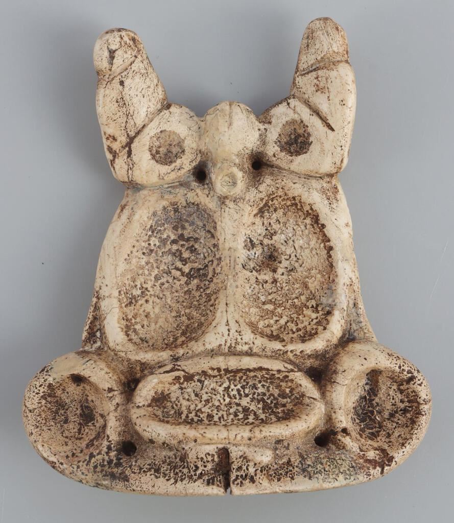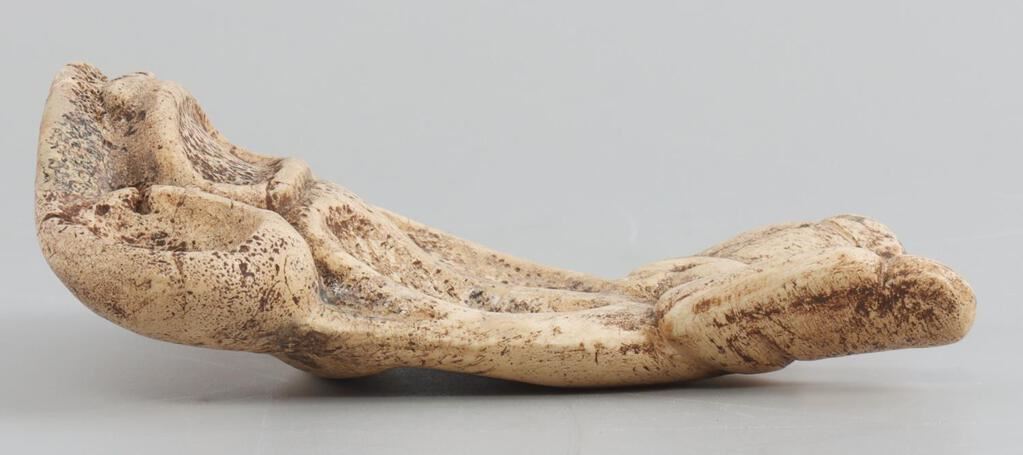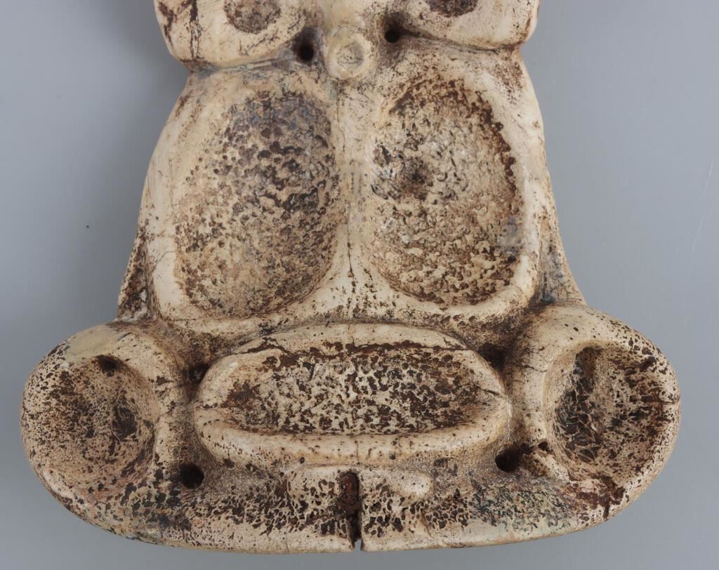 Taino. PreColumbian. Bazaar Abstract spirit or memory being. Pieces like this were made after hallucinogenic visions. Bone was easily carved and could capture the vision while fresh. Here we have a supernatural being with excessively broad head and peculiar body form. The almost residual legs become another face. The vaginal slit denoting gender. This was made from the back of a manatees skull. Manatee were the Taino’s primary source of protein. Length 4.1 inches. Taino Culture c.600-1500AD. Greater Antilles. Private collection. This lot has a reserve.