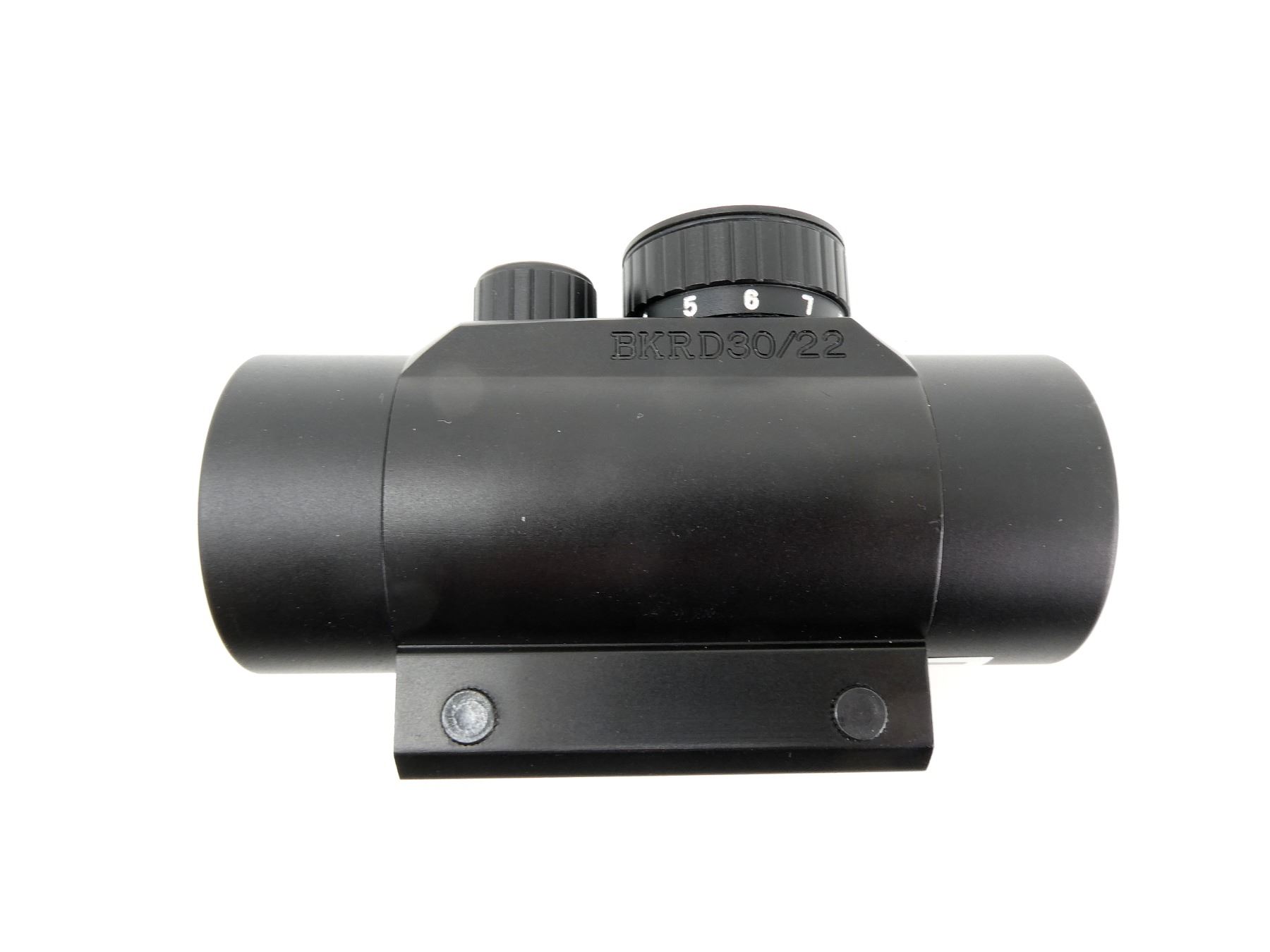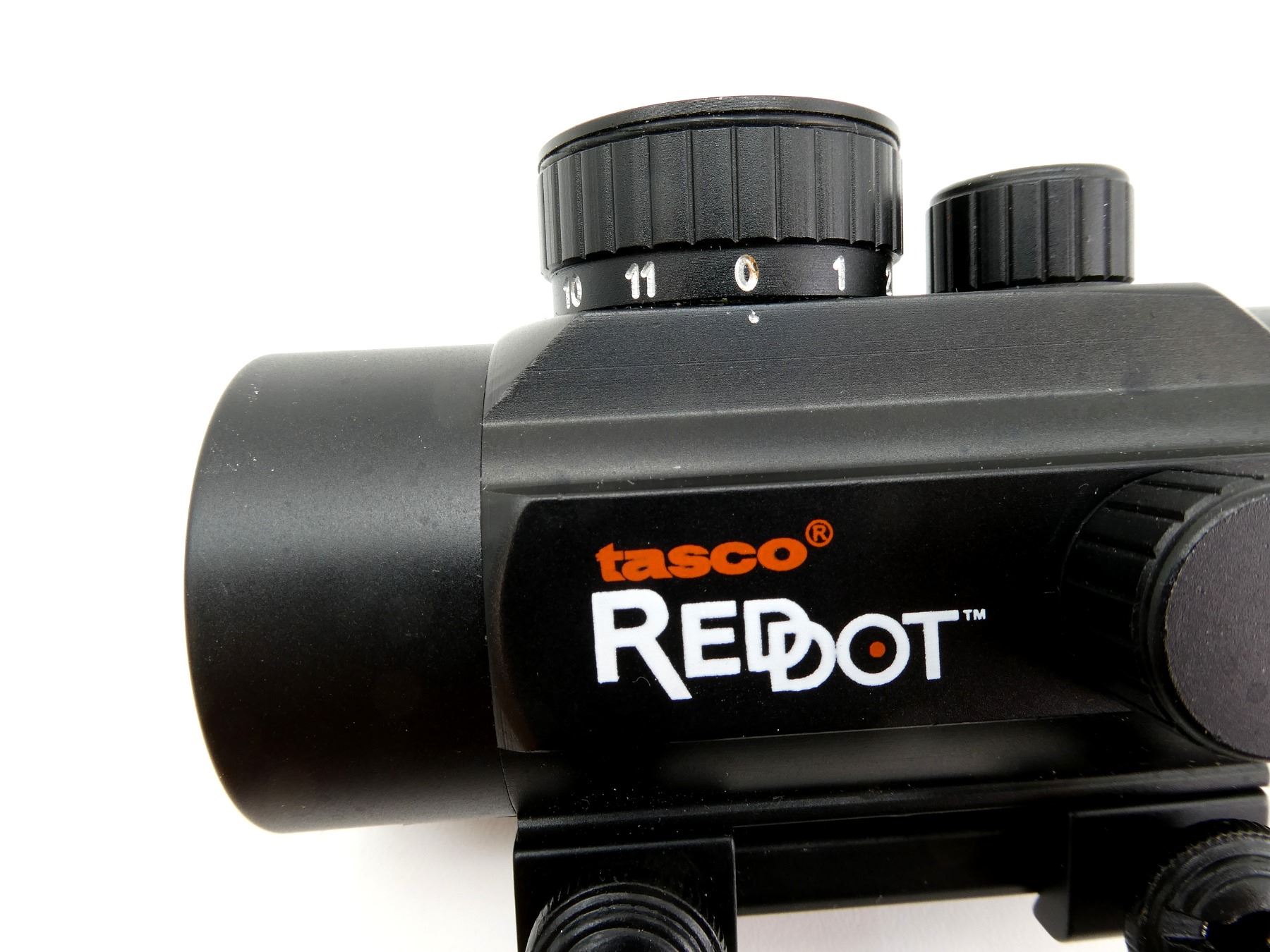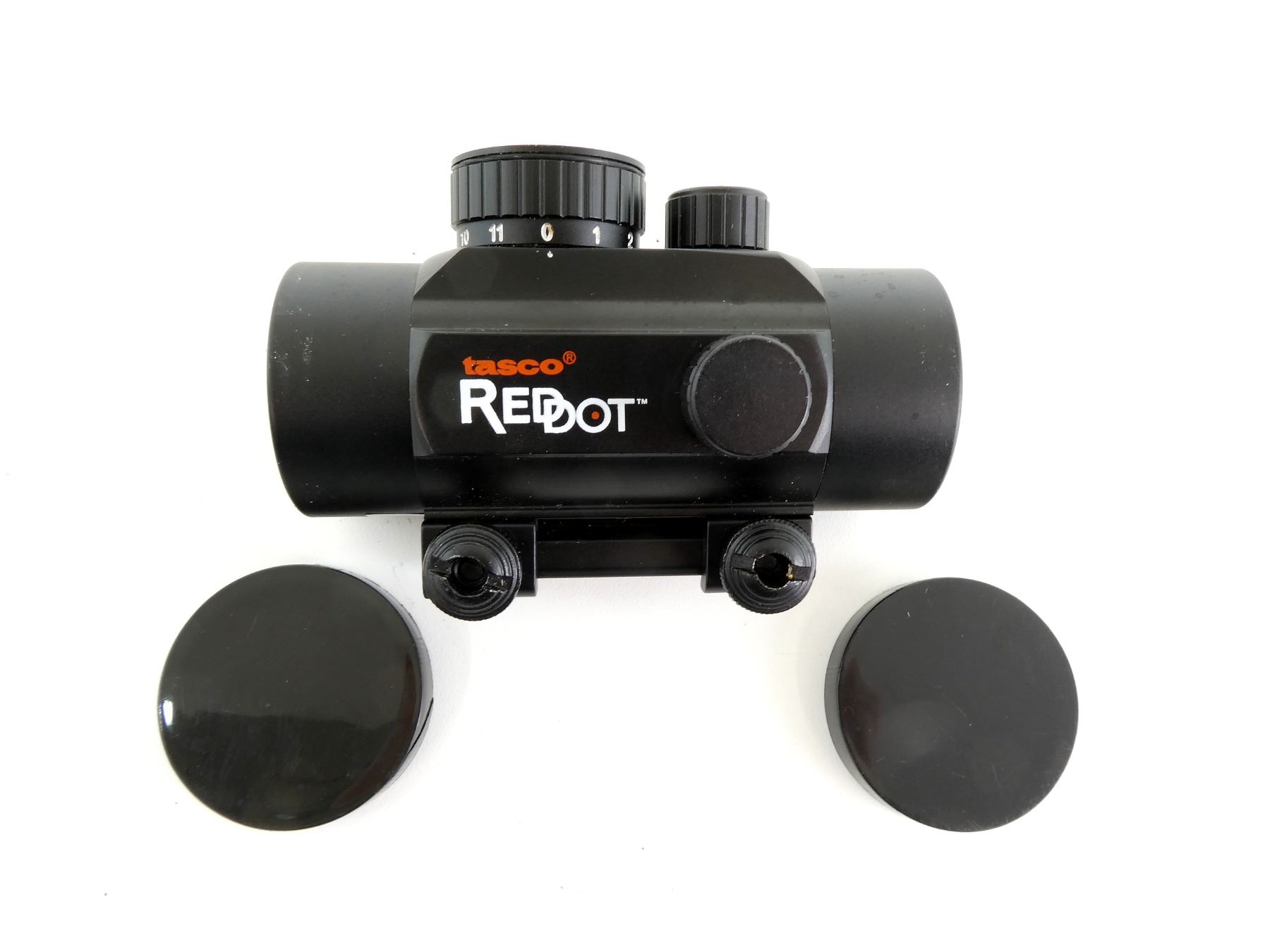 (1) CLEAR OPTICS, WORKING RED DOT RETICLE, WITH VARIOUS BRIGHTNESS SETTINGS, WINDAGE & ELEVATION KNOBS TURN, WITH MOUNTING BASE & LENS COVERS, SHOWS WEAR & TEAR / USE MARKS. SEE PHOTOS.