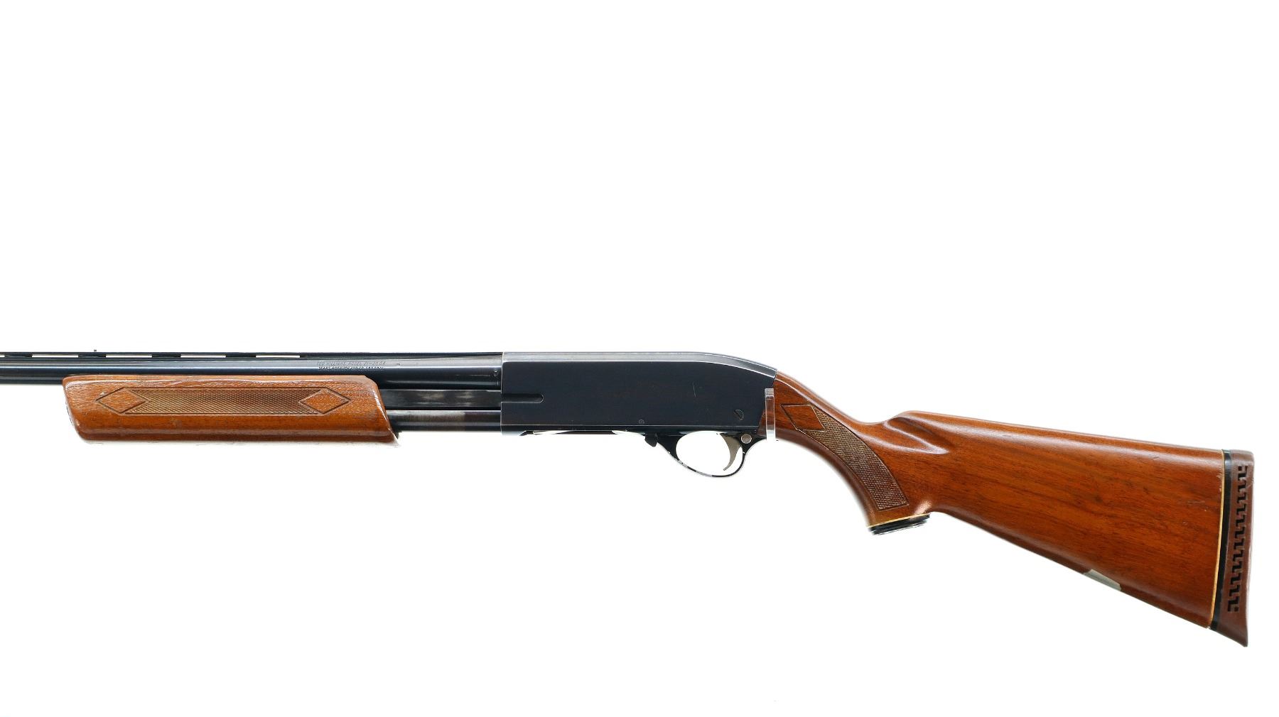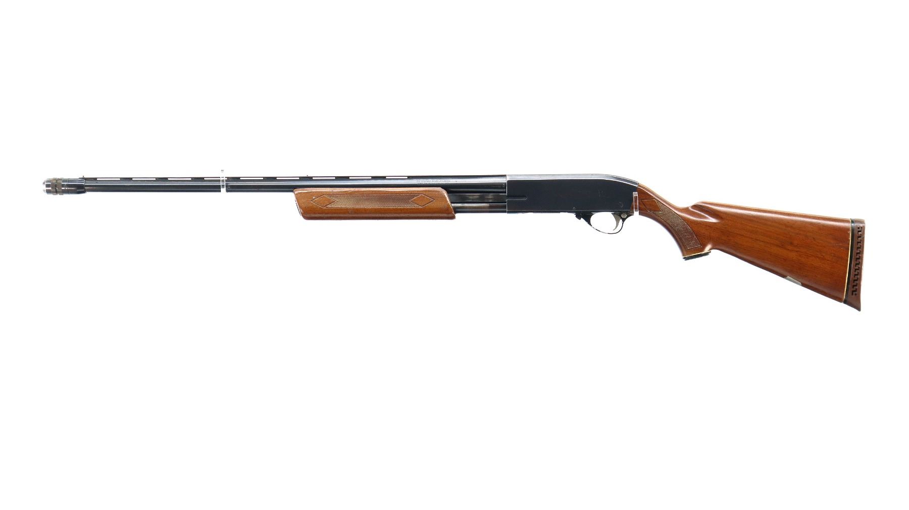 Main Description: Brass front and mid rib beads, blued finish, vent rib, jeweled bolt. Two piece wood stocks, checkered forearm and pistol grip, brown vented rubber recoil pad, grip cap, vanity plate