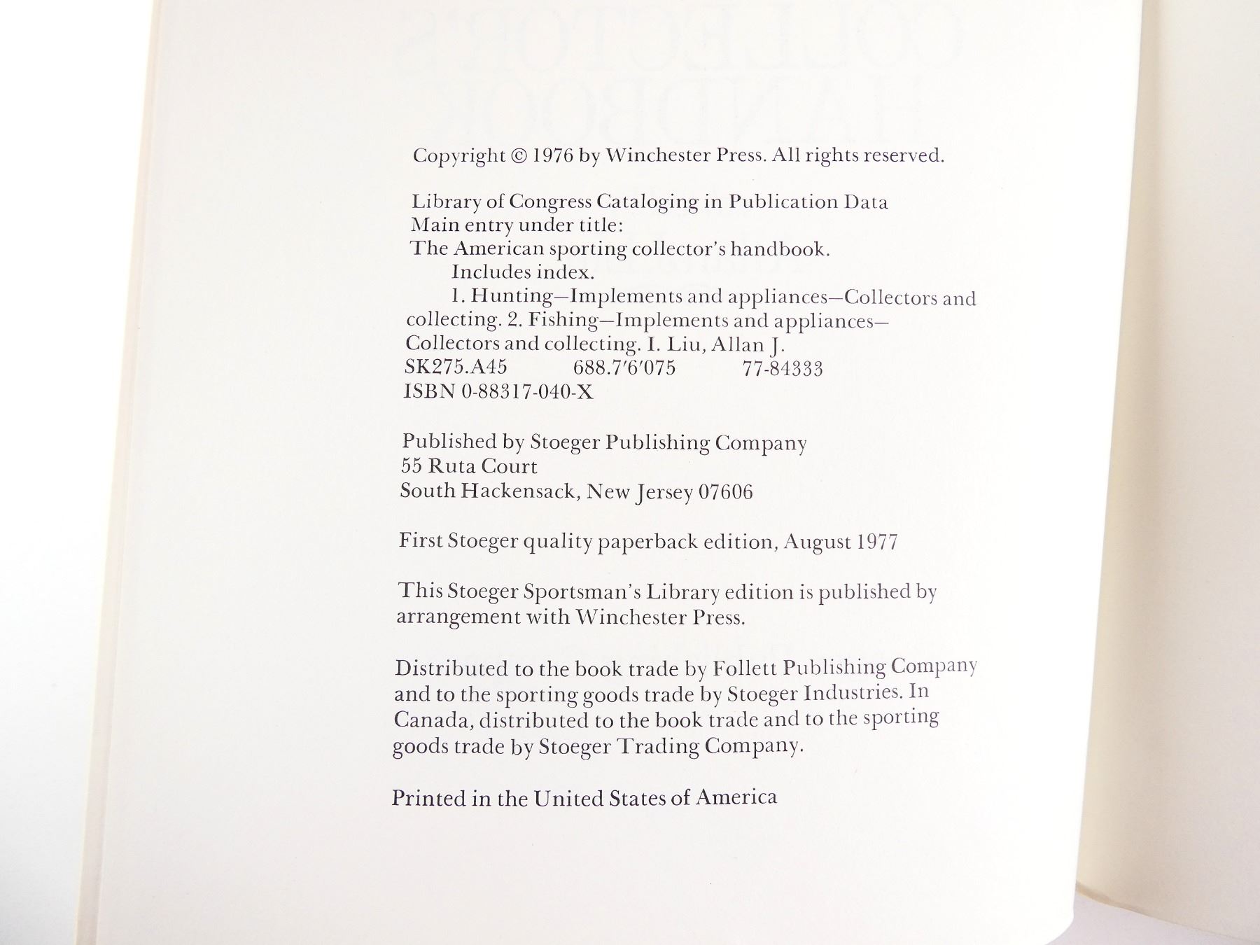 LOT INCLUDES; (1) "THE AMERICAN SPORTING COLLECTOR'S HANDBOOK" BY ALLAN J. LIU, SOFT COVER, ISBN: 0-88317-040-X & (1) "GOING WILD" BOOK BY JAN E. DIZARD, SOFT COVER, ISBN: 0-87023-909-0. SEE PHOTOS.