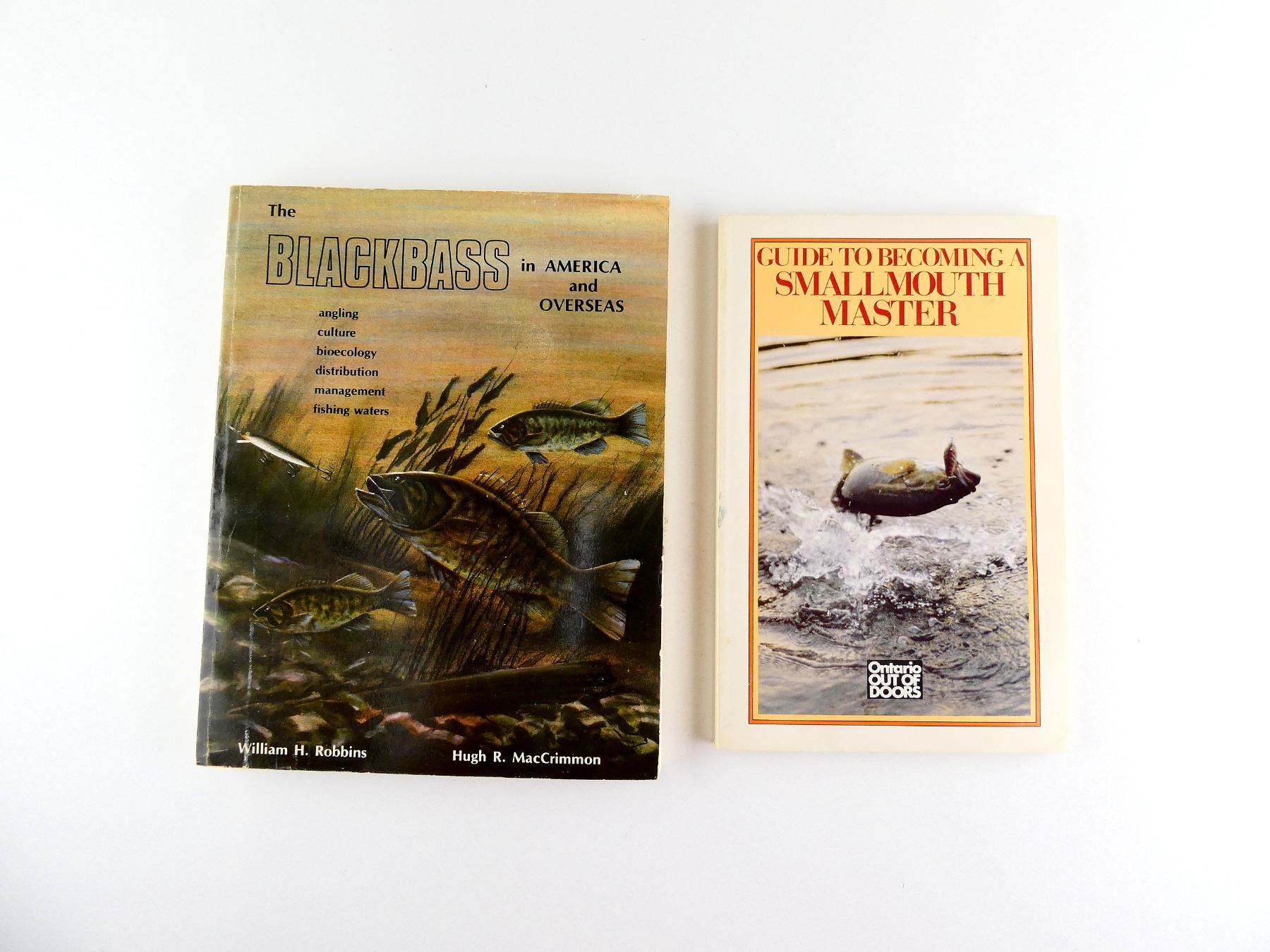 LOT INCLUDES; (1) "THE BLACKBASS IN AMERICA AND OVERSEAS" BOOK BY WILLIAM H. ROBBINS & HUGH R. MACCRIMMON, SOFT COVER, ISBN: 0-9690498-1-1 & (1) "GUIDE TO BECOMING A SMALLMOUTH MASTER" BOOK PUBLISHED BY ONTARIO OUT OF DOORS, SOFT COVER, COPYRIGHT 1984. SEE PHOTOS.