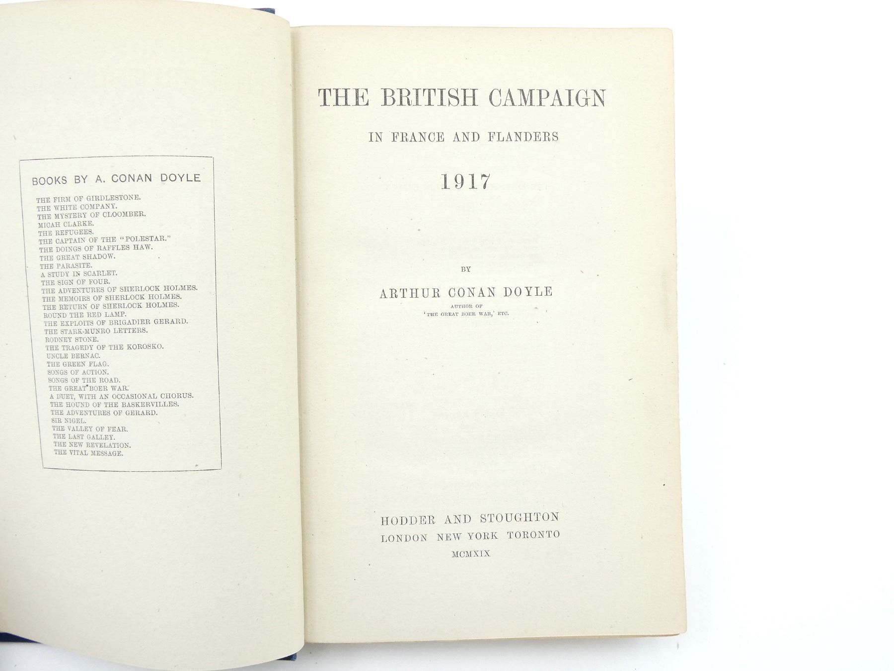 (1) BY ARTHUR CONAN DOYLE, HARD COVER, 1919. SEE PHOTOS.