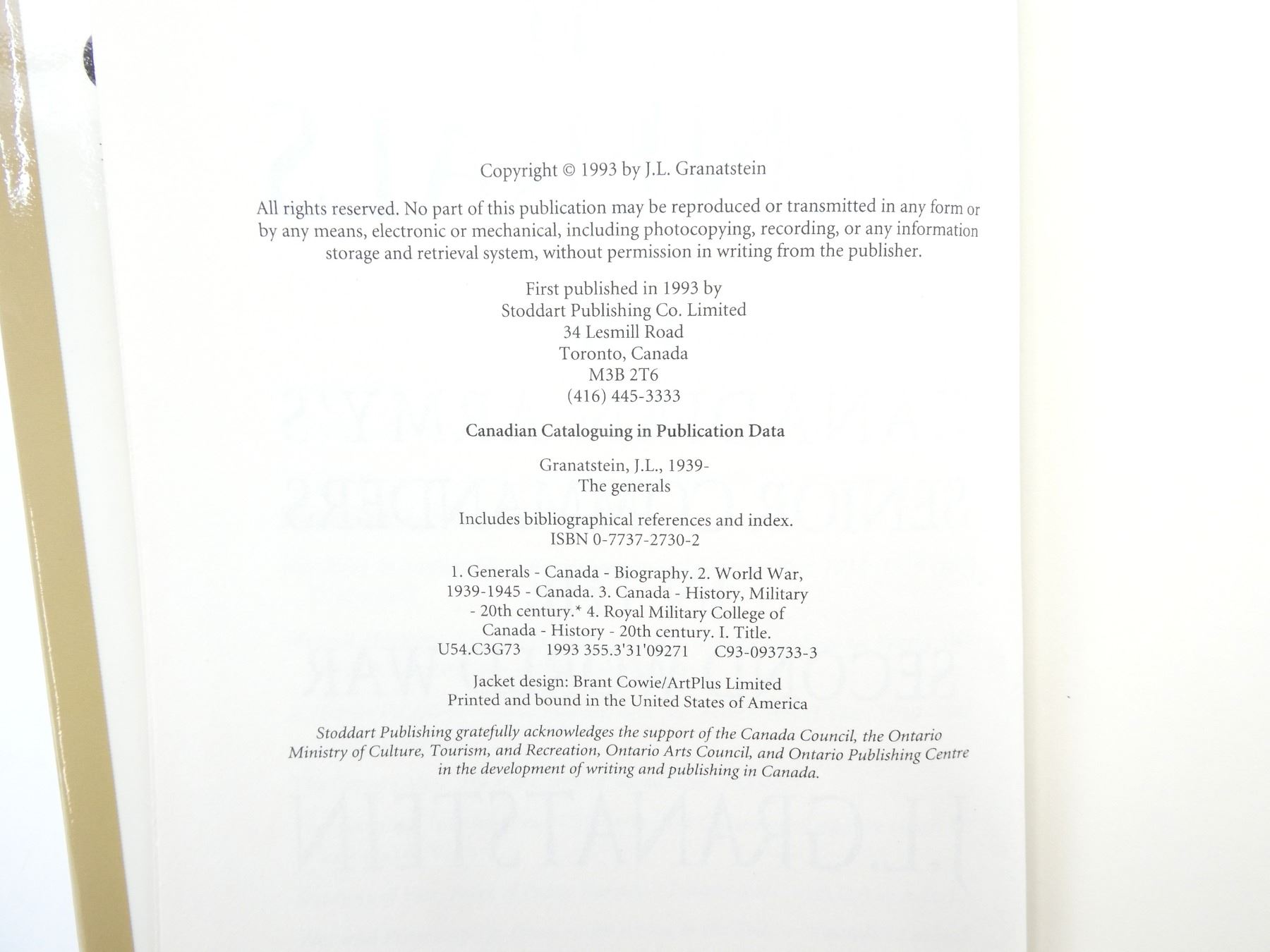 (1) BY J.L. GRANATSTEIN, HARD COVER WITH DUST COVER, ISBN: 0-7737-2739-6. SEE PHOTOS.