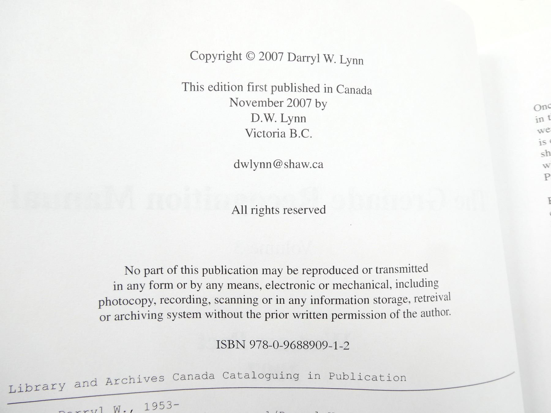(1) BY DARRYL W. LYNN, SOFT COVER, FIRST EDITION, ISBN: 978-0-9688909-1-2. SEE PHOTOS.