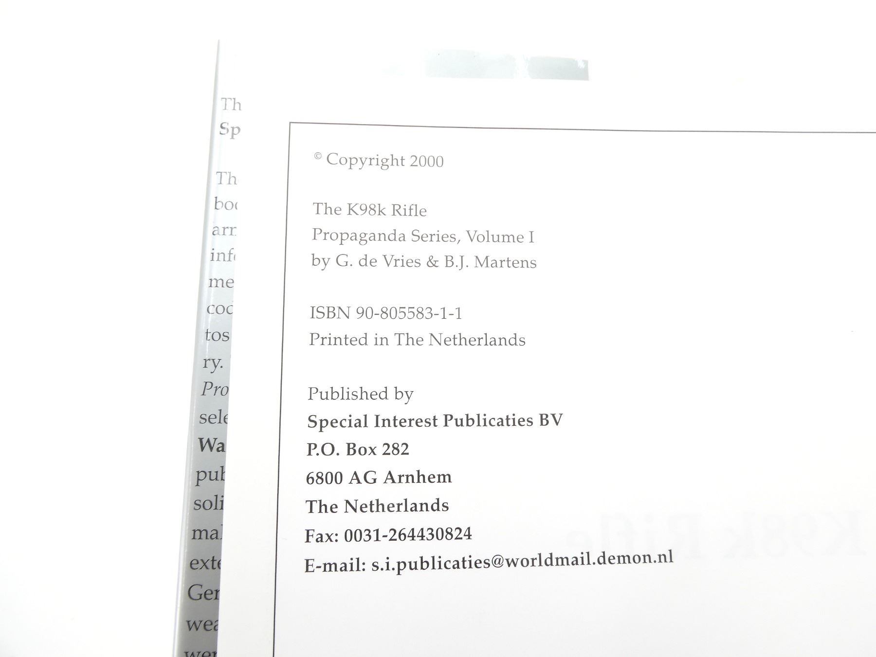 (1) BY G. DE VRIES & B.J. MARTENS, HARD COVER WITH DUST COVER, FIRST EDITION, ISBN: 90-805583-1-1. SEE PHOTOS.