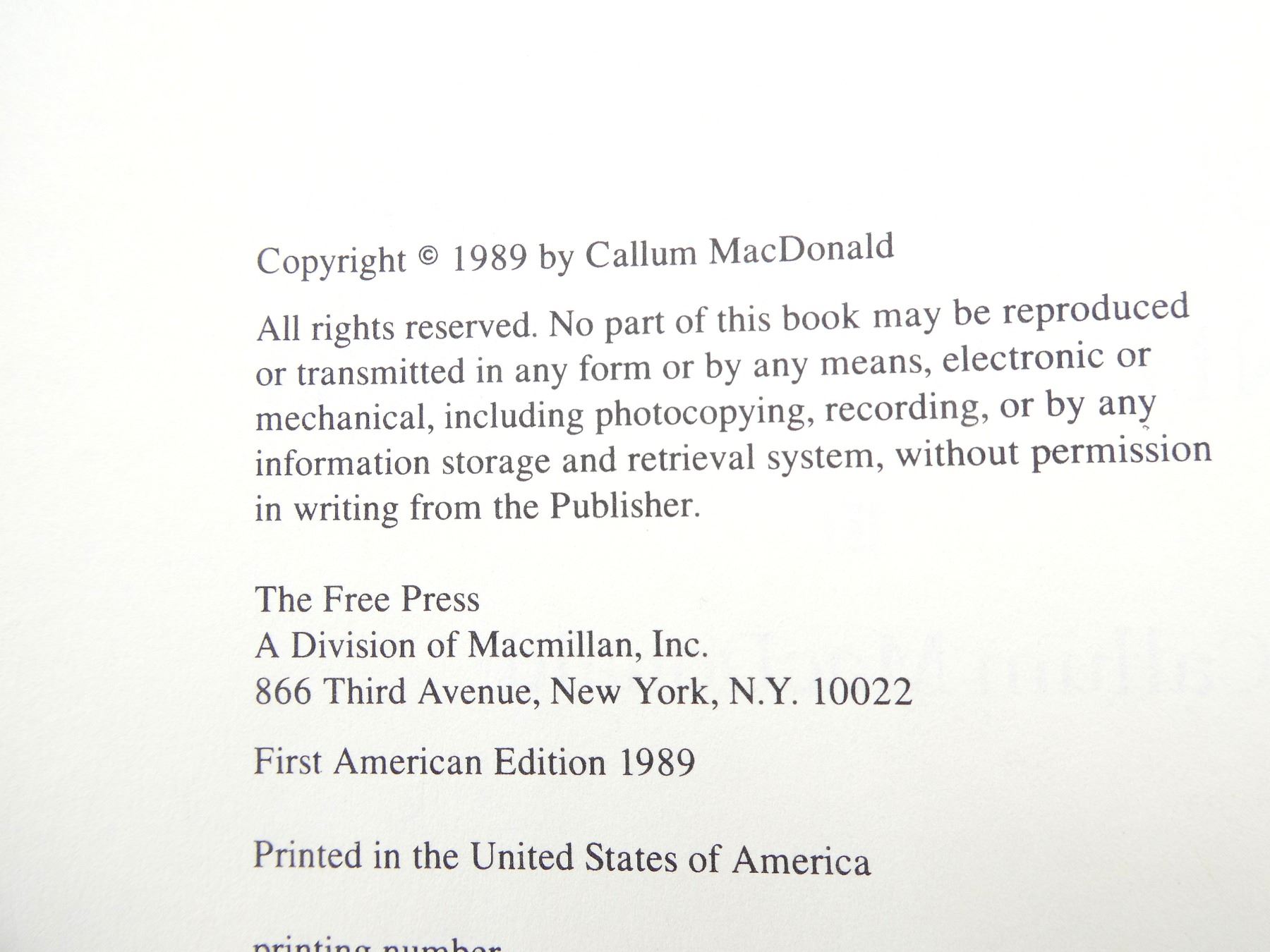 (1) BY CALLUM MACDONALD, HARD COVER WITH DUST COVER, ISBN: 0-02-919561-6. SEE PHOTOS.