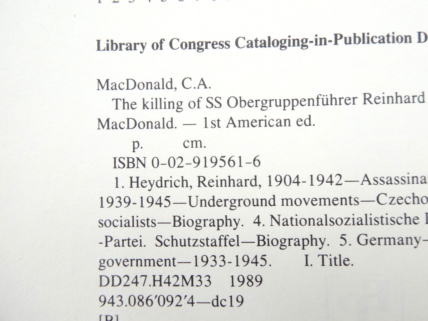 "THE KILLING OF SS OBERGRUPPENFUHRER REINHARD HEYDRICH" BOOK