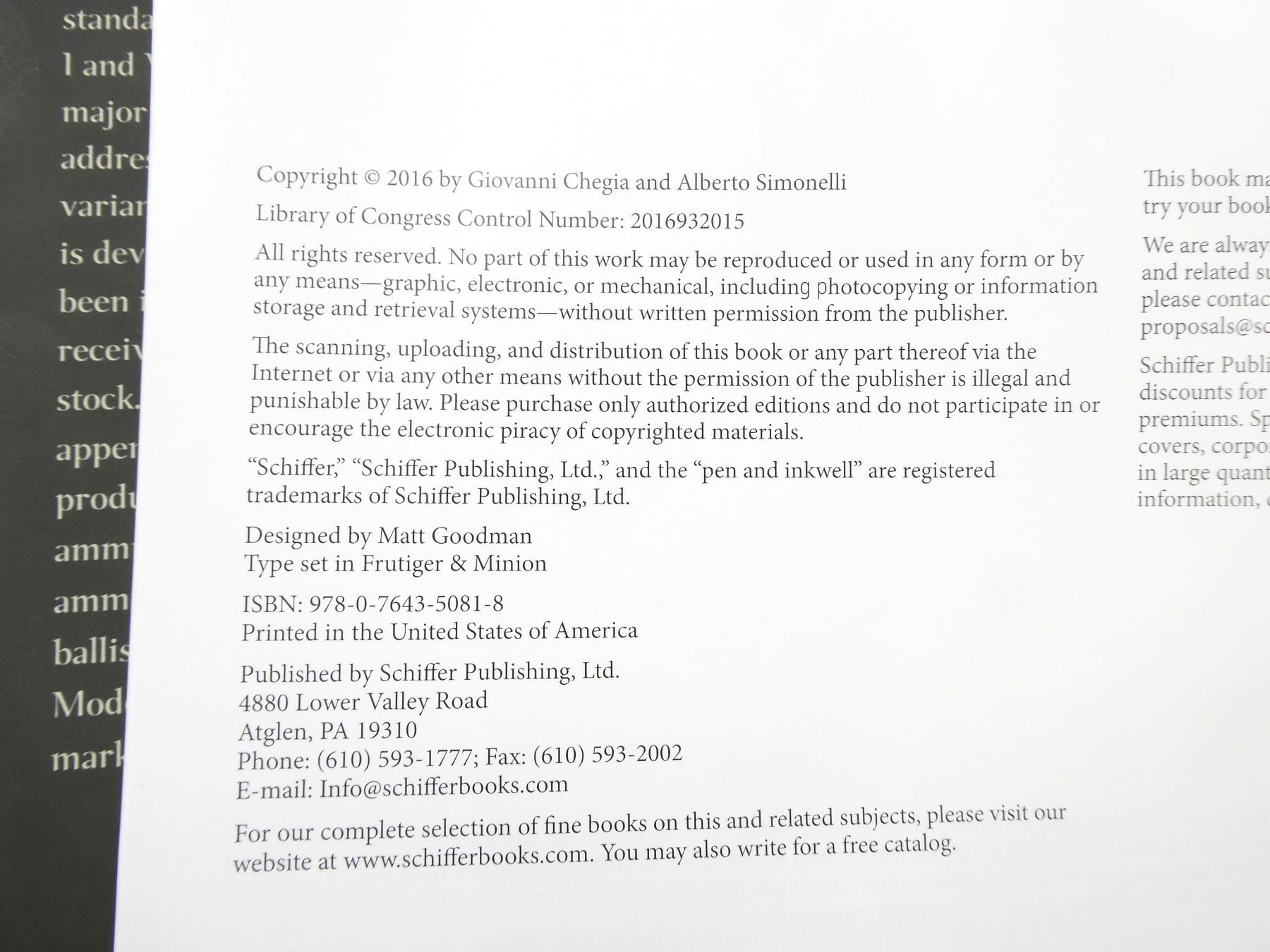 (1) BY GIOVANNI CHEGIA & ALBERTO SIMONELLI, HARD COVER WITH DUST COVER, FIRST EDITION, ISBN: 978-0-7643-5081-8. SEE PHOTOS.