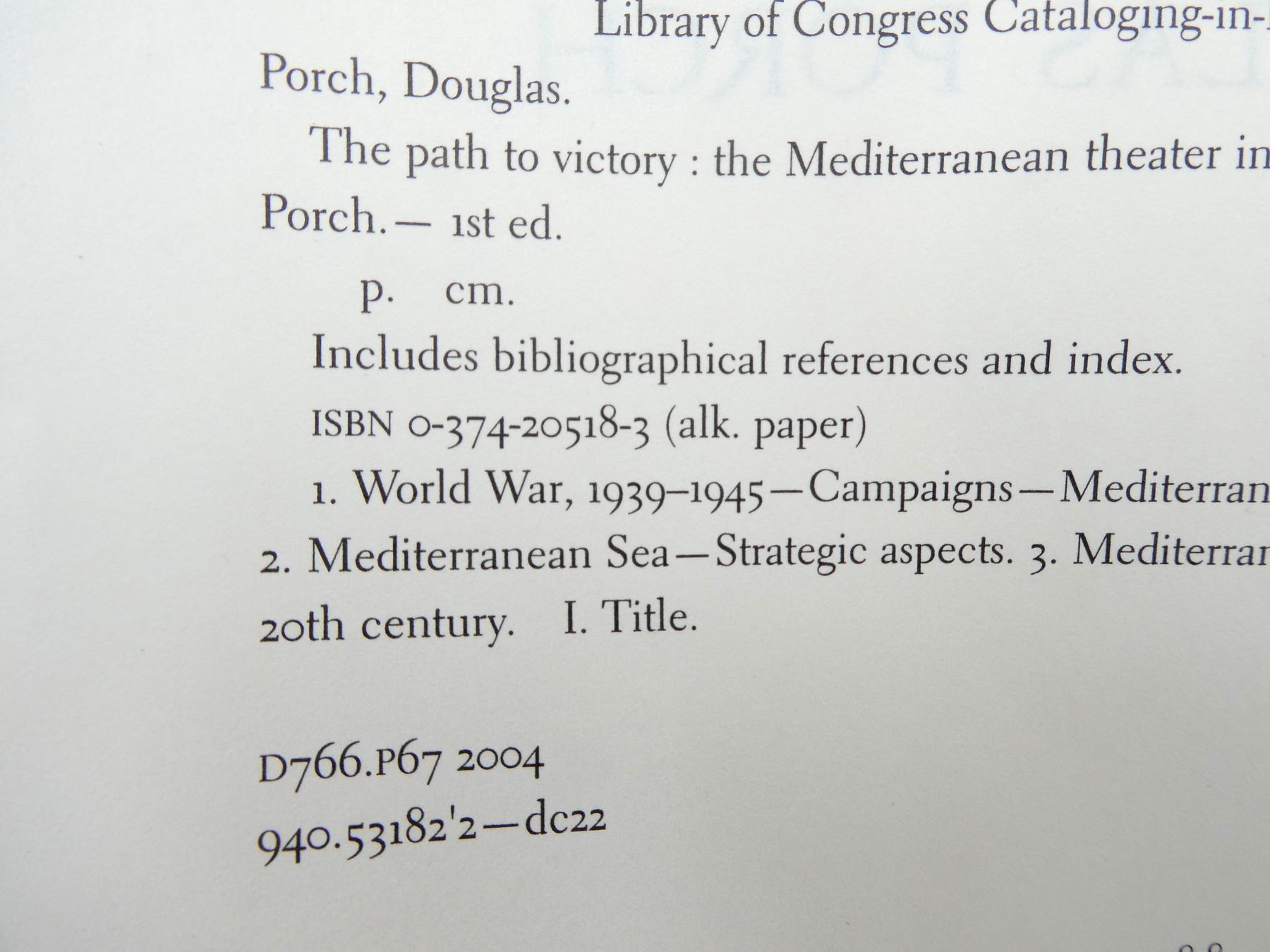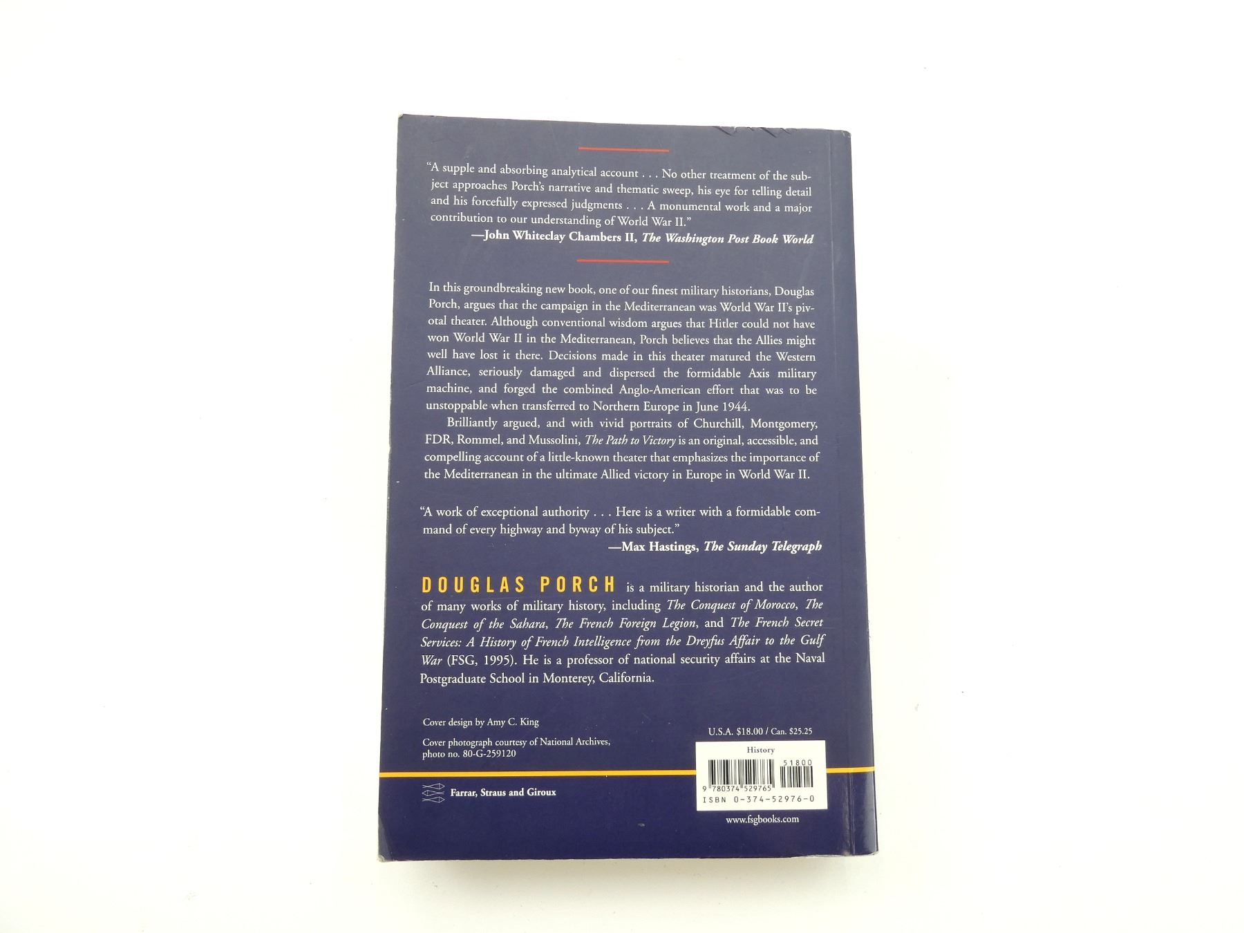 (1) "THE MEDITERRANEAN THEATER IN WORLD WAR II" BOOK BY DOUGLAS PORCH, SOFT COVER, ISBN: 0-374-52976-0. SEE PHOTOS.