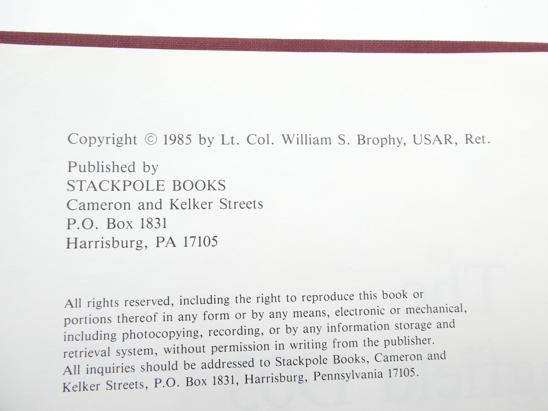 (1) BY LT. COL. WILLIAM S. BROPHY, HARD COVER, ISBN: 0-8117-0872-1. SEE PHOTOS.