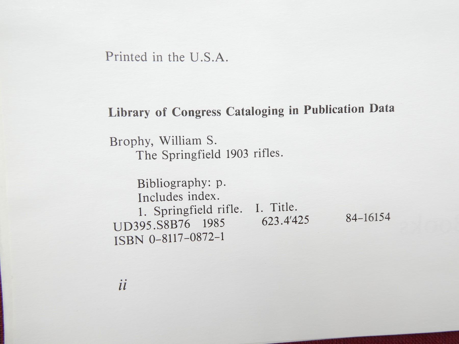 "THE SPRINGFIELD 1903 RIFLES" BOOK