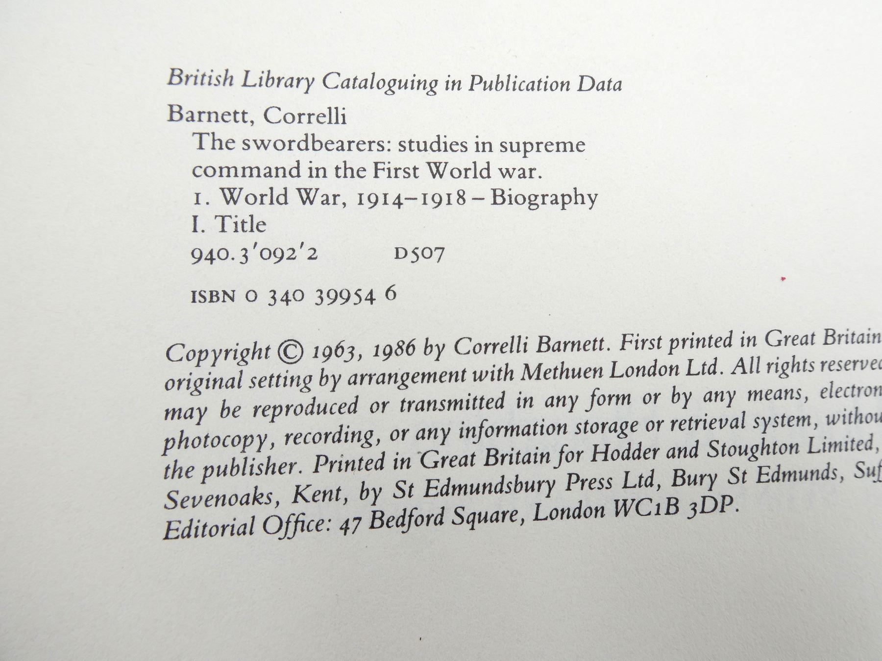 (1) BY CORRELLI BARNETT, SOFT COVER, ISBN: 0-340-39954-6. SEE PHOTOS.