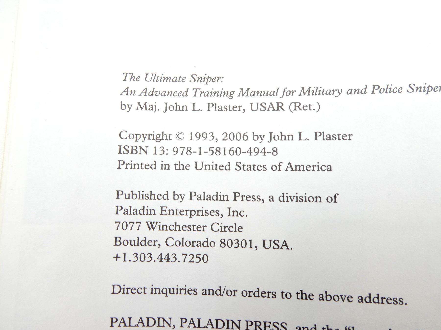 "THE ULTIMATE SNIPER, AN ADVANCED TRAINING MANUAL FOR MILITARY & POLICE SNIPERS" BOOK