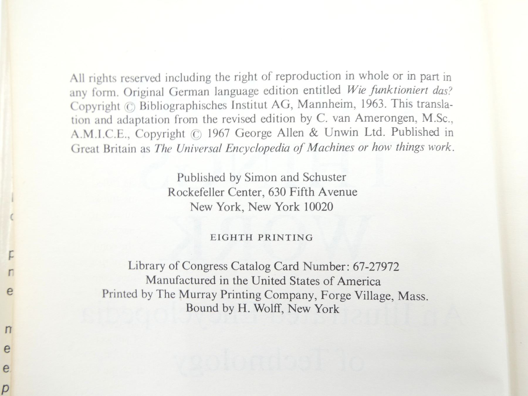 LOT INCLUDES; (1) "THE WAY THINGS WORK - AN ILLUSTRATED ENCYCLOPEDIA OF TECHNOLOGY" BOOK, BY SIMON & SCHUSTER, HARD COVER WITH DUST COVER, COPYRIGHT 1963 & "THE BERLITZ SELF-TEACHER: GERMAN" BOOK, BY GROSSET & DUNLAP, HARD COVER WITH DUST COVER, COPYRIGHT 1950. SEE PHOTOS.