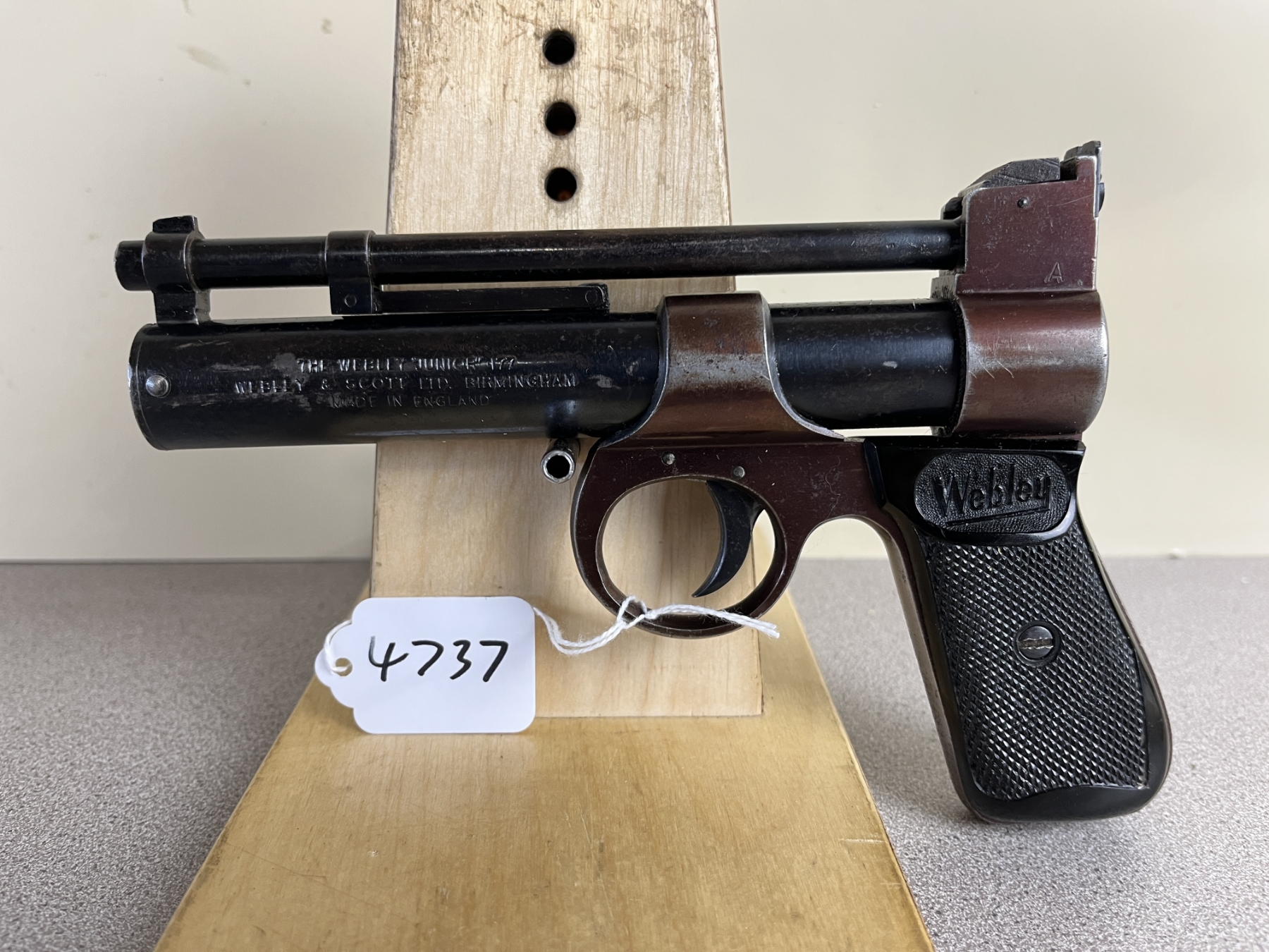 CONDITION: G OVERALL VG BORE. SPECS: 6IN BBL. <500FPS. EXTRAS: WOODEN BOX. S/N: 535