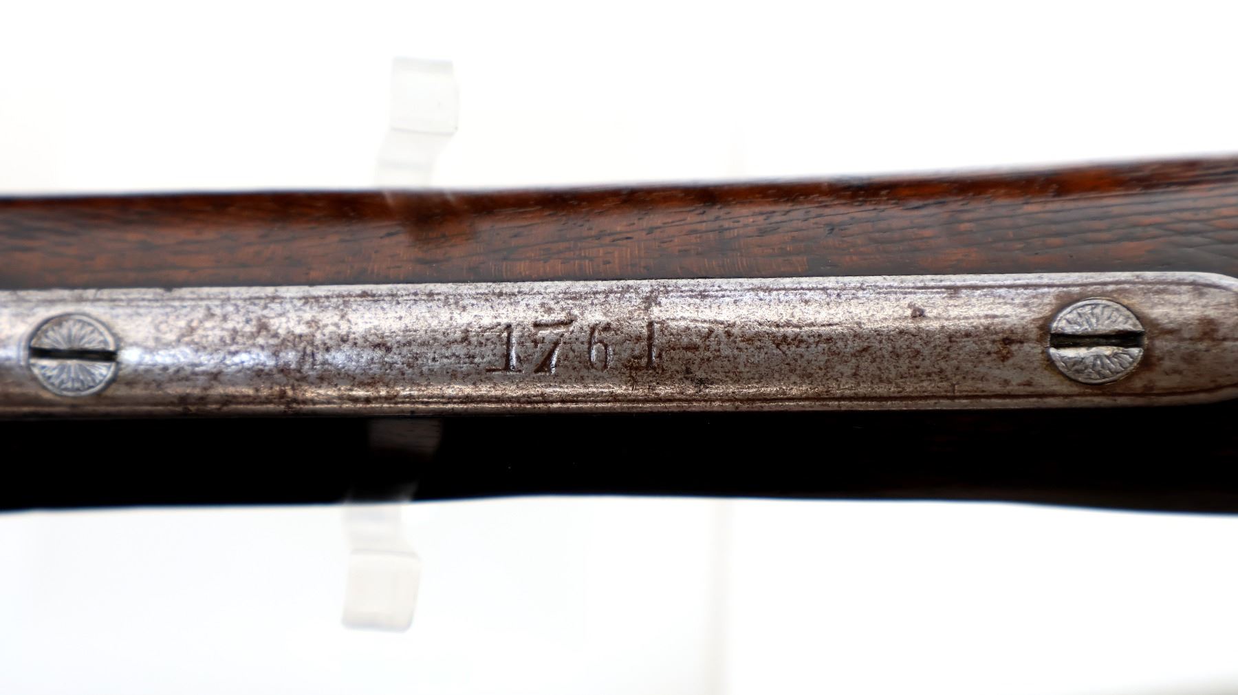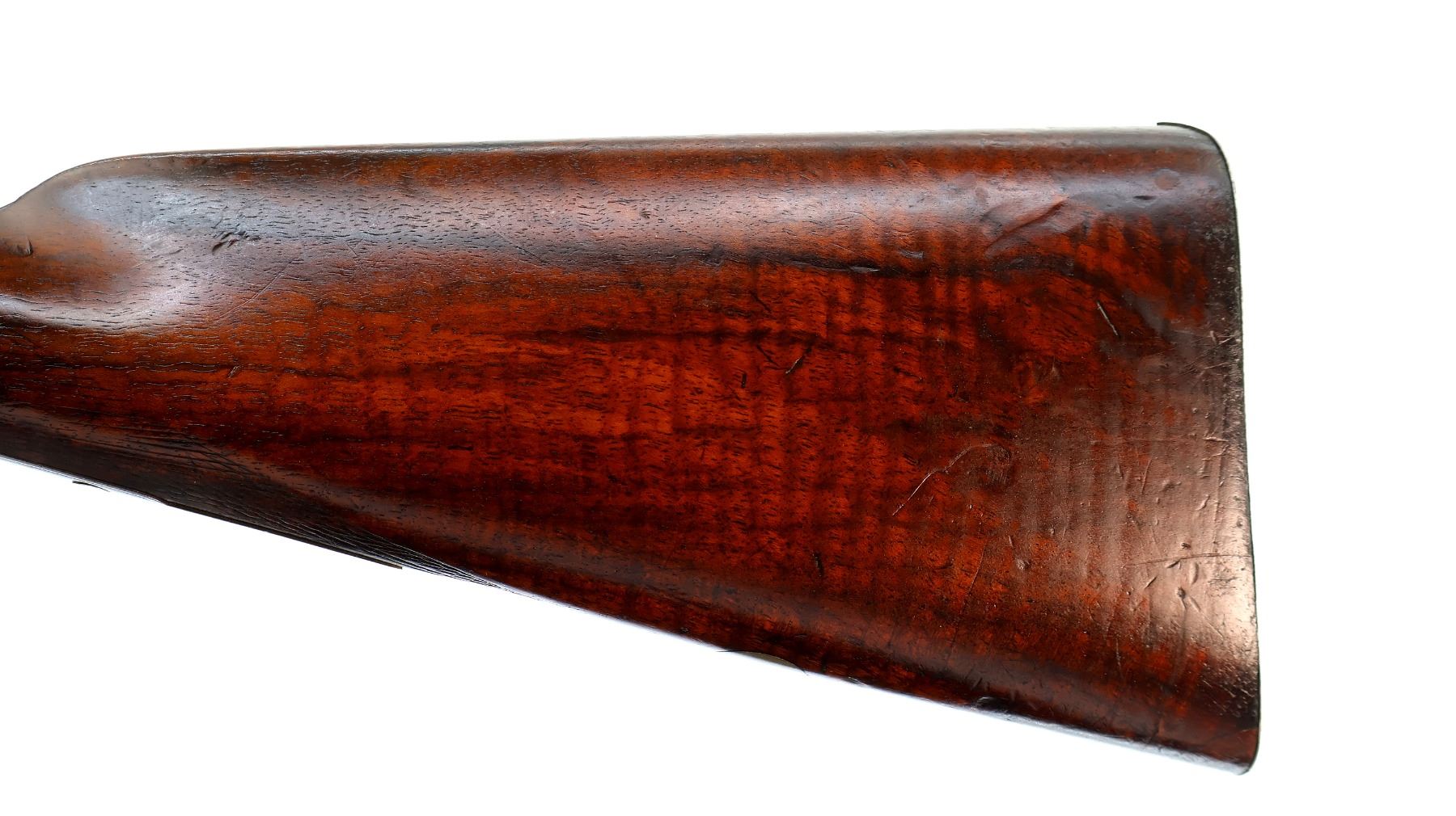 Wear: Metal finish shows some light rust speckles, scratches, handling marks and wear. Stocks show some marks, scratches and wear.
