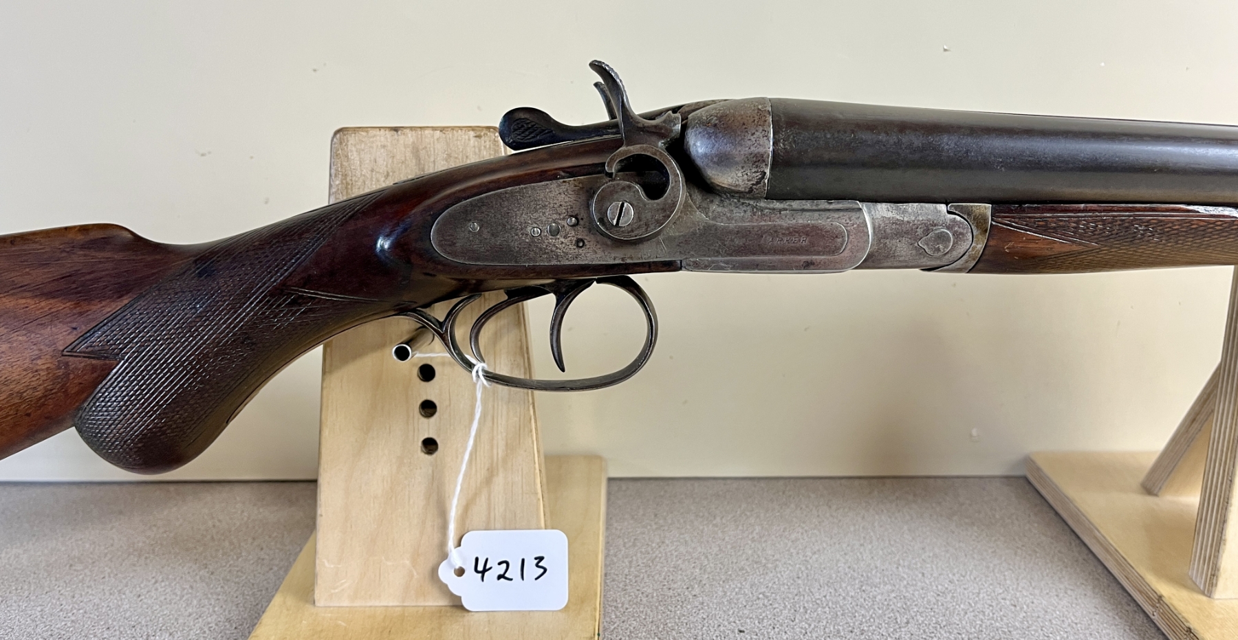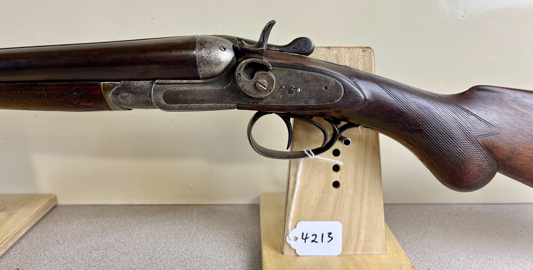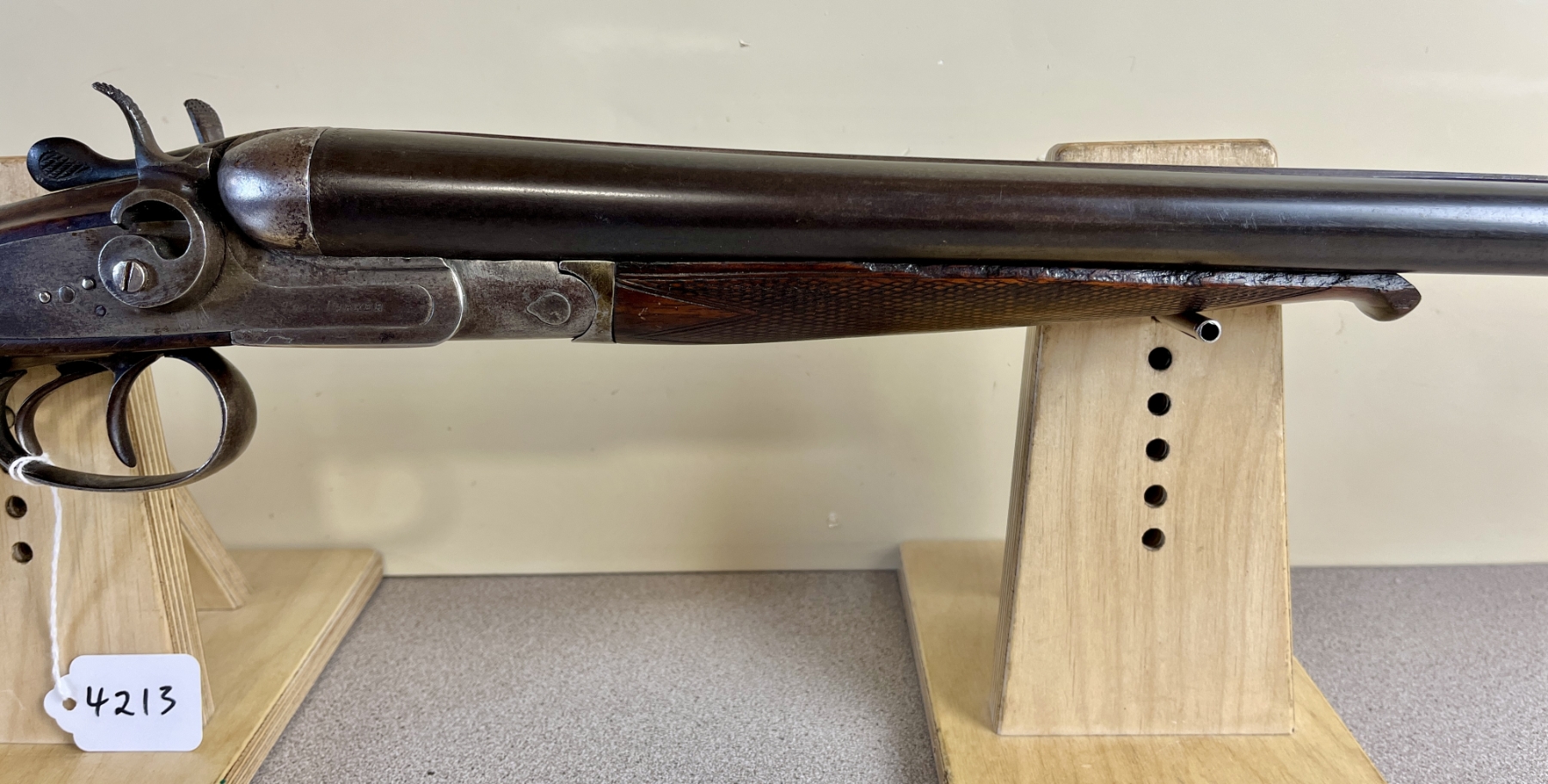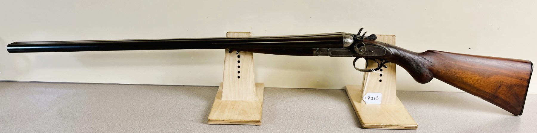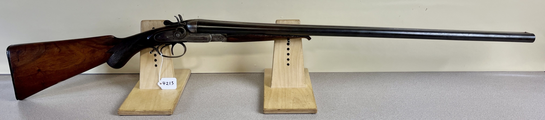 CONDITION: F OVERALL INCL BORES. NOTE: SHOWS APPROX 1MM PLAY ON FACE, FORESTOCK IS CHIPPED, BORES SHOW MILD TO MODERATE PITTING. SPECS: 29-7/8IN SXS BBLS. FIXED CYL BY CYL BORE. EXTRAS: NONE. S/N: 76887350