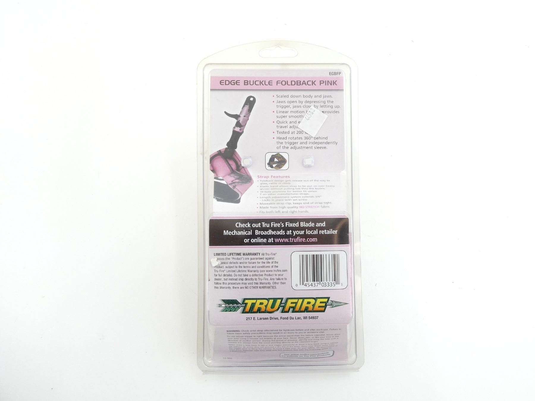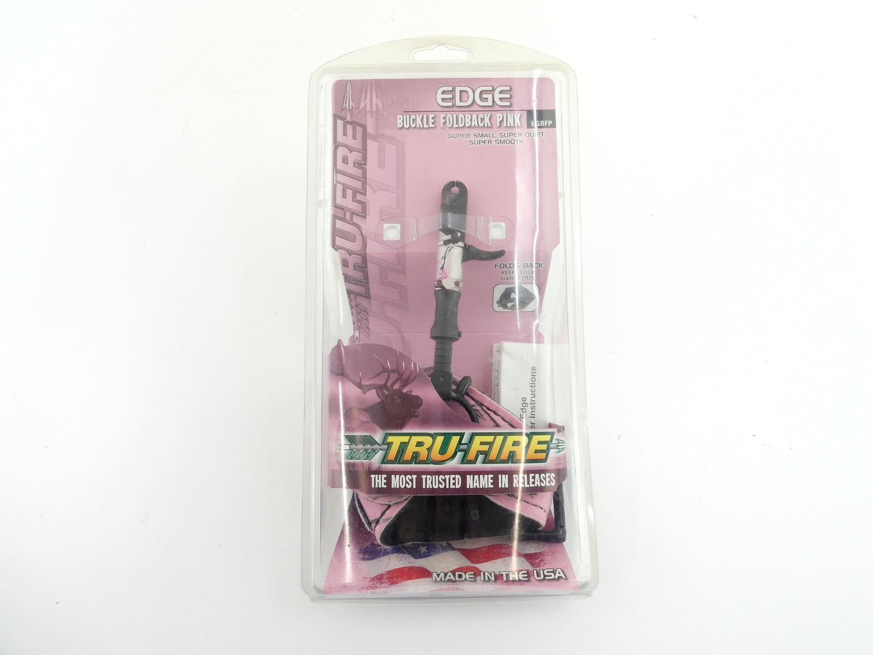 LOT INCLUDES; (1) TRU-FIRE EDGE BUCKEL FOLDBACK ARROW RELEASE, PINK CAMO, JAWS OPEN BY DEPRESSING THE TRIGGER, JAWS CLOSE BY LETTING UP, LINEAR MOTION BEARING PROVIDES SUPER SMOOTH TRIGGER, QUICK AND EASY TRIGGER TRAVEL ADJUSTMENT, TESTED AT 200 LBS, HEAD ROTATES 360 DEG BEHIND THE TRIGGER AND INDEPENDENTLY OF THE ADJUSTMENT SLEEVE, NEW OLD STOCK, SEE PHOTOS.