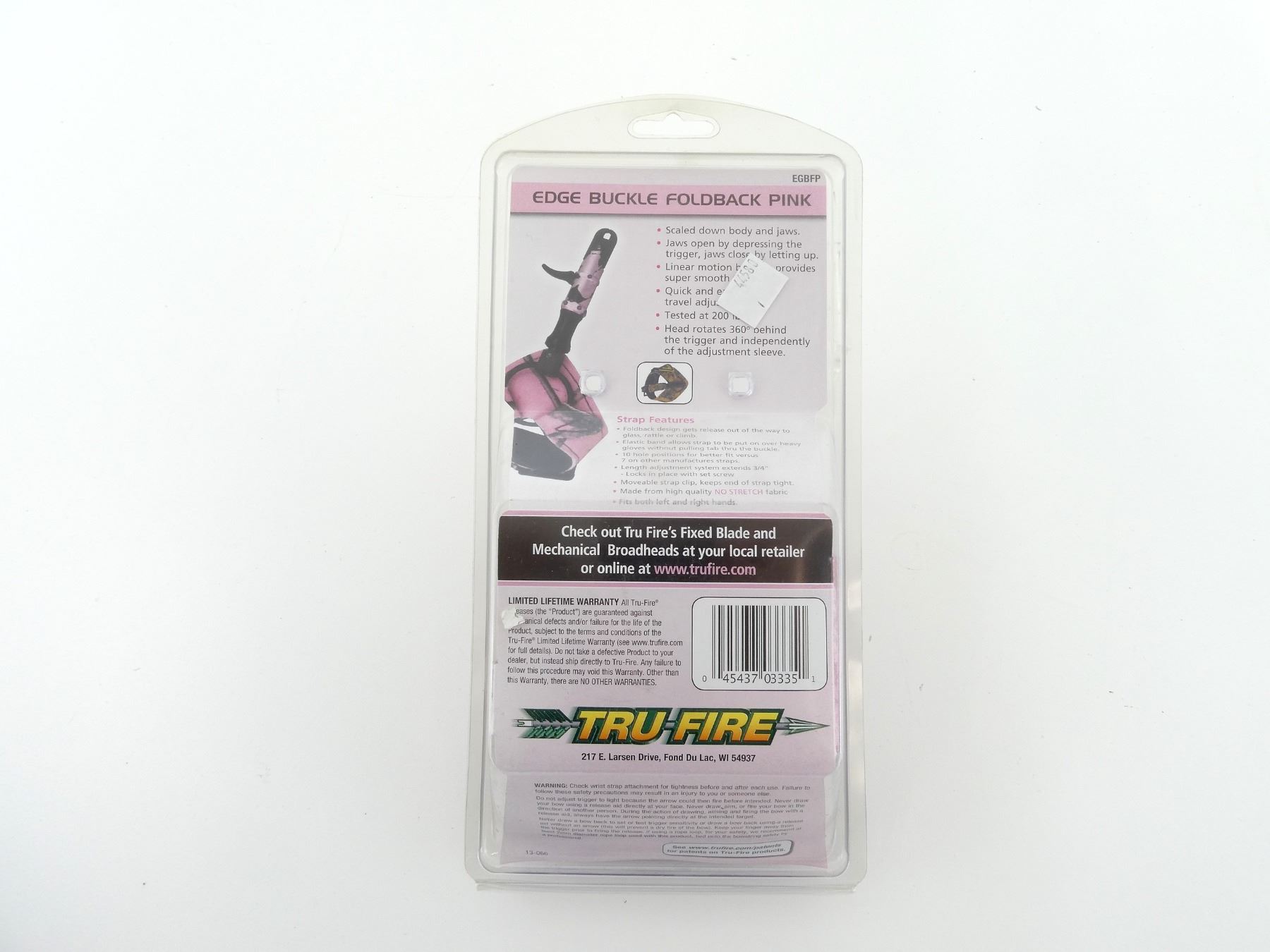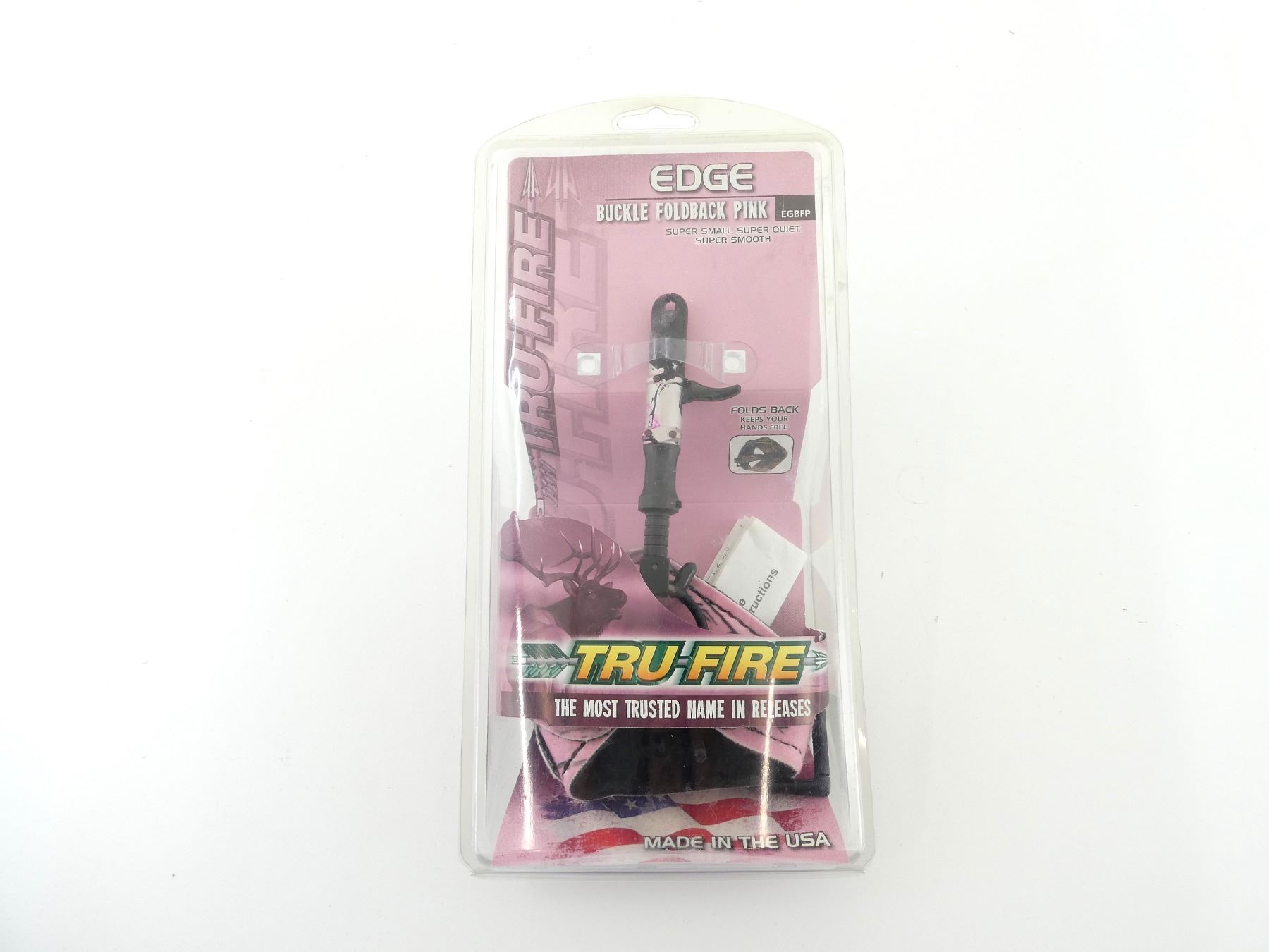 LOT INCLUDES; (1) TRU-FIRE EDGE BUCKEL FOLDBACK ARROW RELEASE, PINK CAMO, JAWS OPEN BY DEPRESSING THE TRIGGER, JAWS CLOSE BY LETTING UP, LINEAR MOTION BEARING PROVIDES SUPER SMOOTH TRIGGER, QUICK AND EASY TRIGGER TRAVEL ADJUSTMENT, TESTED AT 200 LBS, HEAD ROTATES 360 DEG BEHIND THE TRIGGER AND INDEPENDENTLY OF THE ADJUSTMENT SLEEVE, NEW OLD STOCK, SEE PHOTOS.