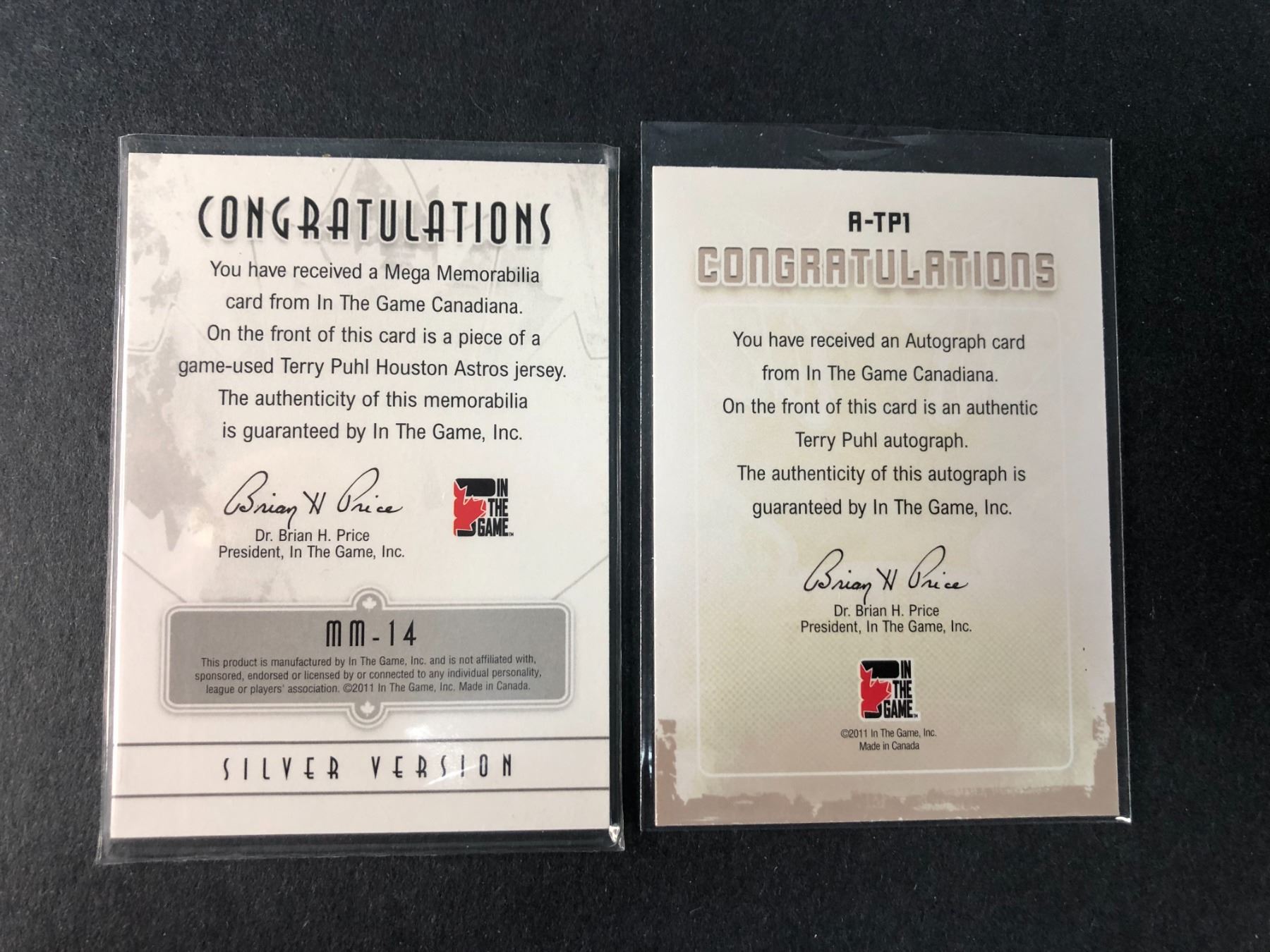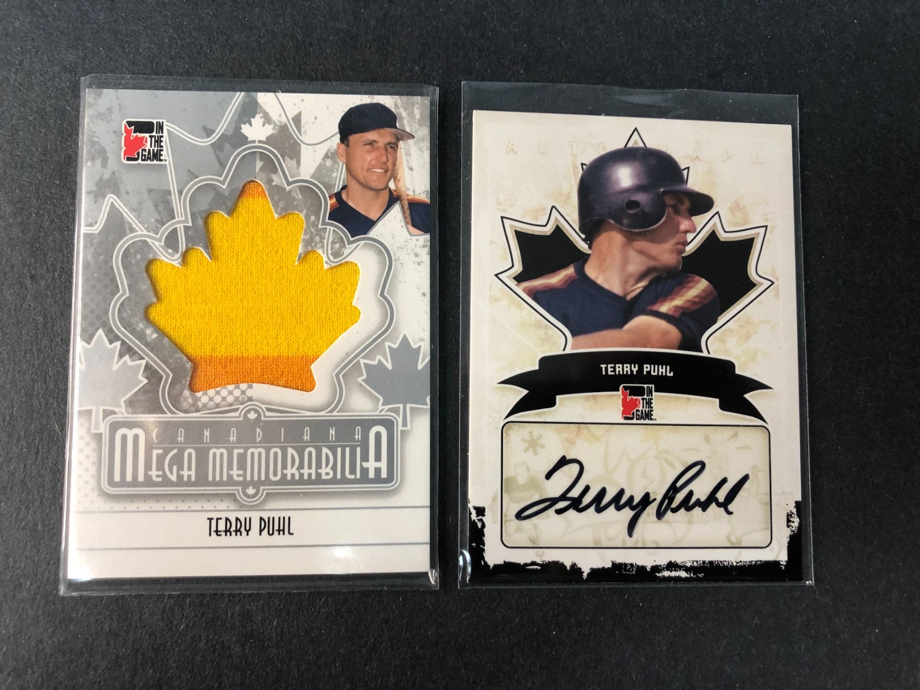 Canadian born Terry Puhl game used card and certified autographed card lot