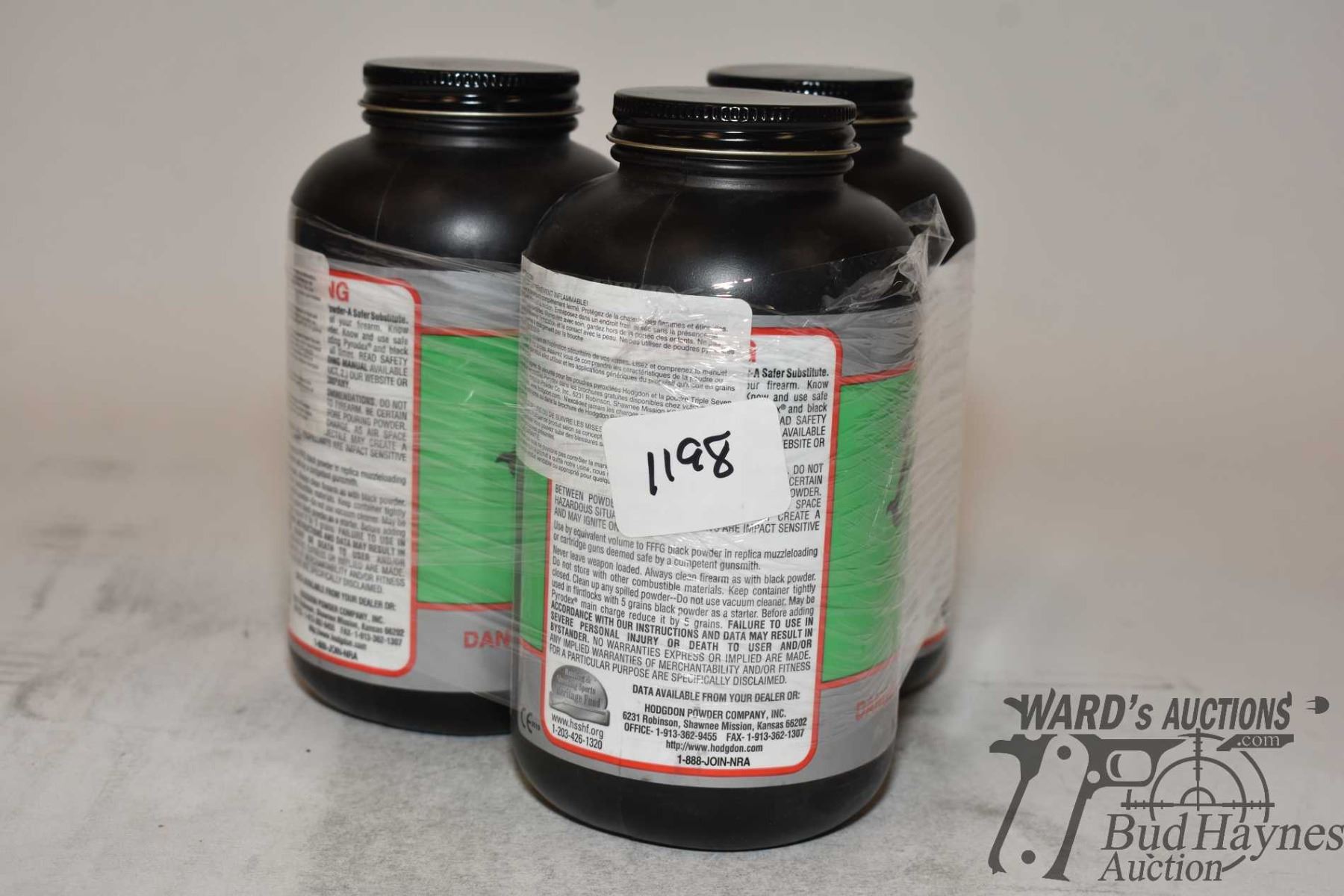 Three full 1lb containers of Hodgdon Pyrodex muzzle loading powder P-FFFG