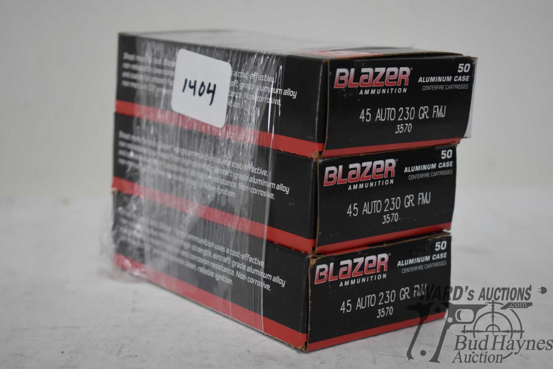 Three full 50 count boxes Blazer aluiminum case .45 auto 230 gr FMJ