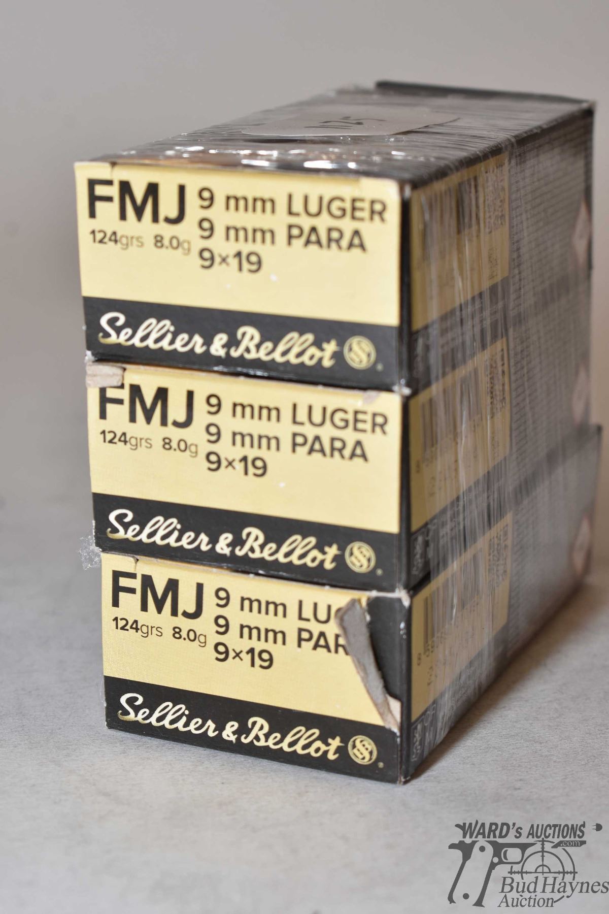 Three full 50 count boxes of Sellier & Bellot 9mm 124 gr