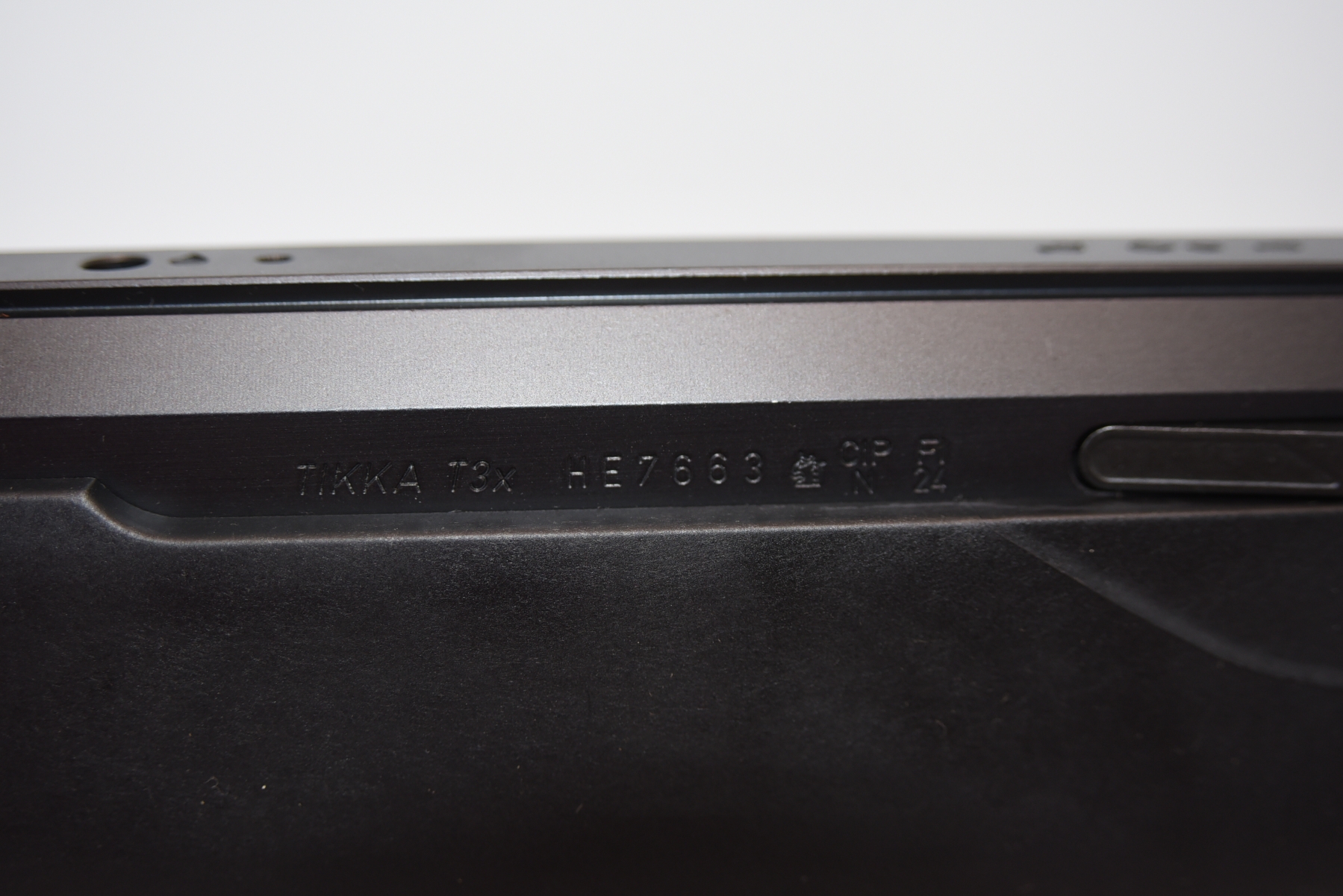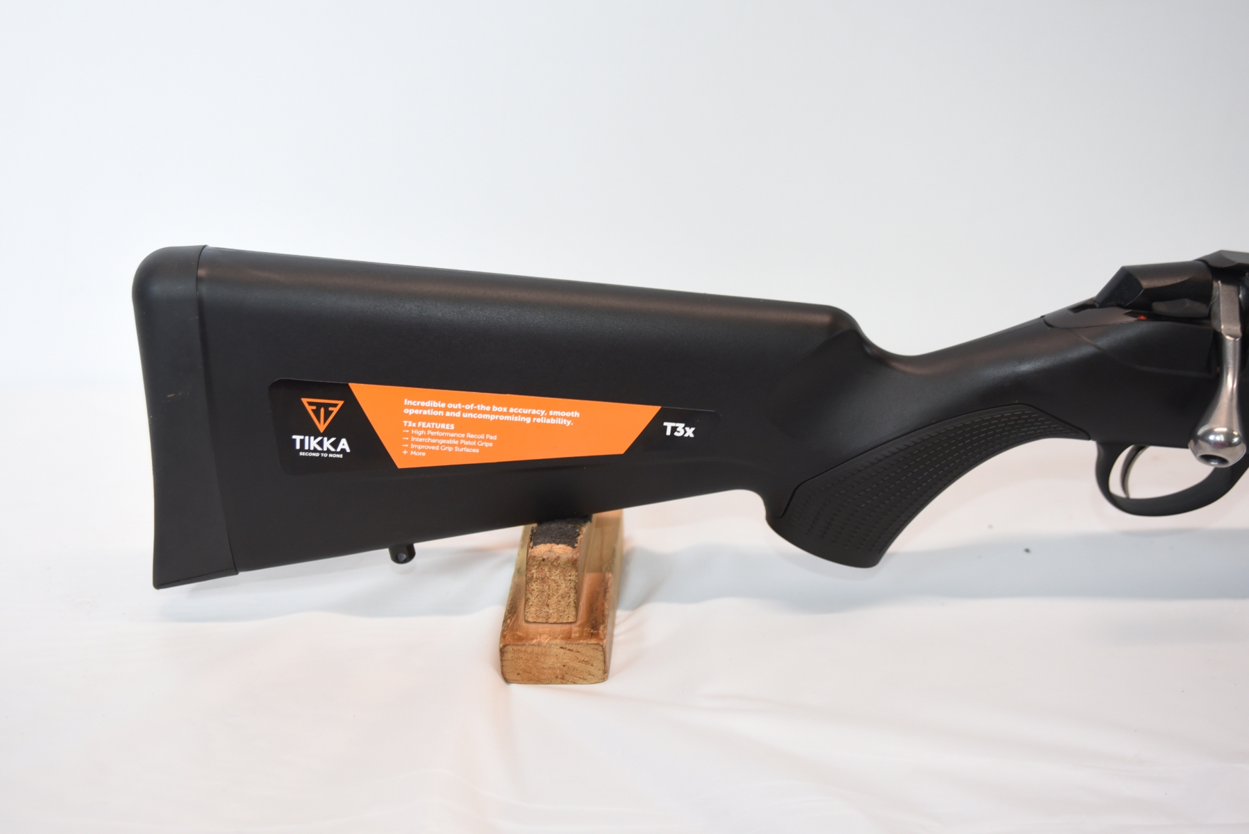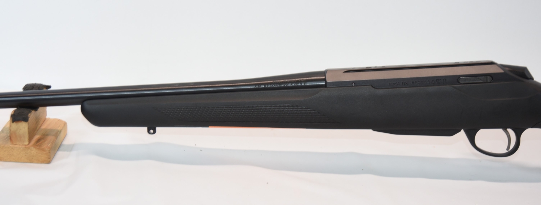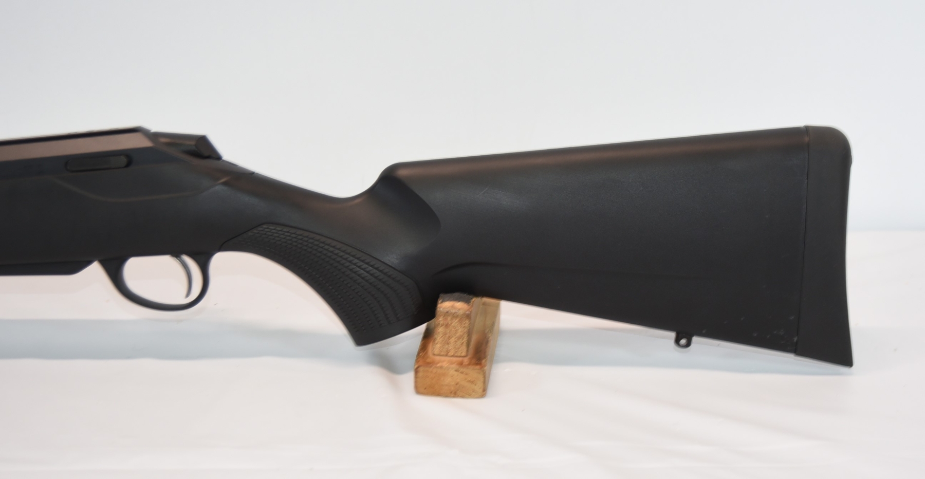 Synthetic stock shows few light scuffs and scratches; condition is excellent.