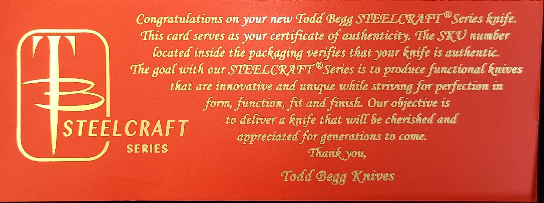 Todd Begg Knives Steelcraft Series Custom Pocket Knife..