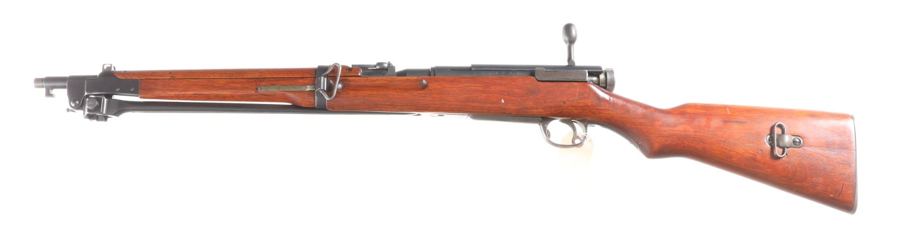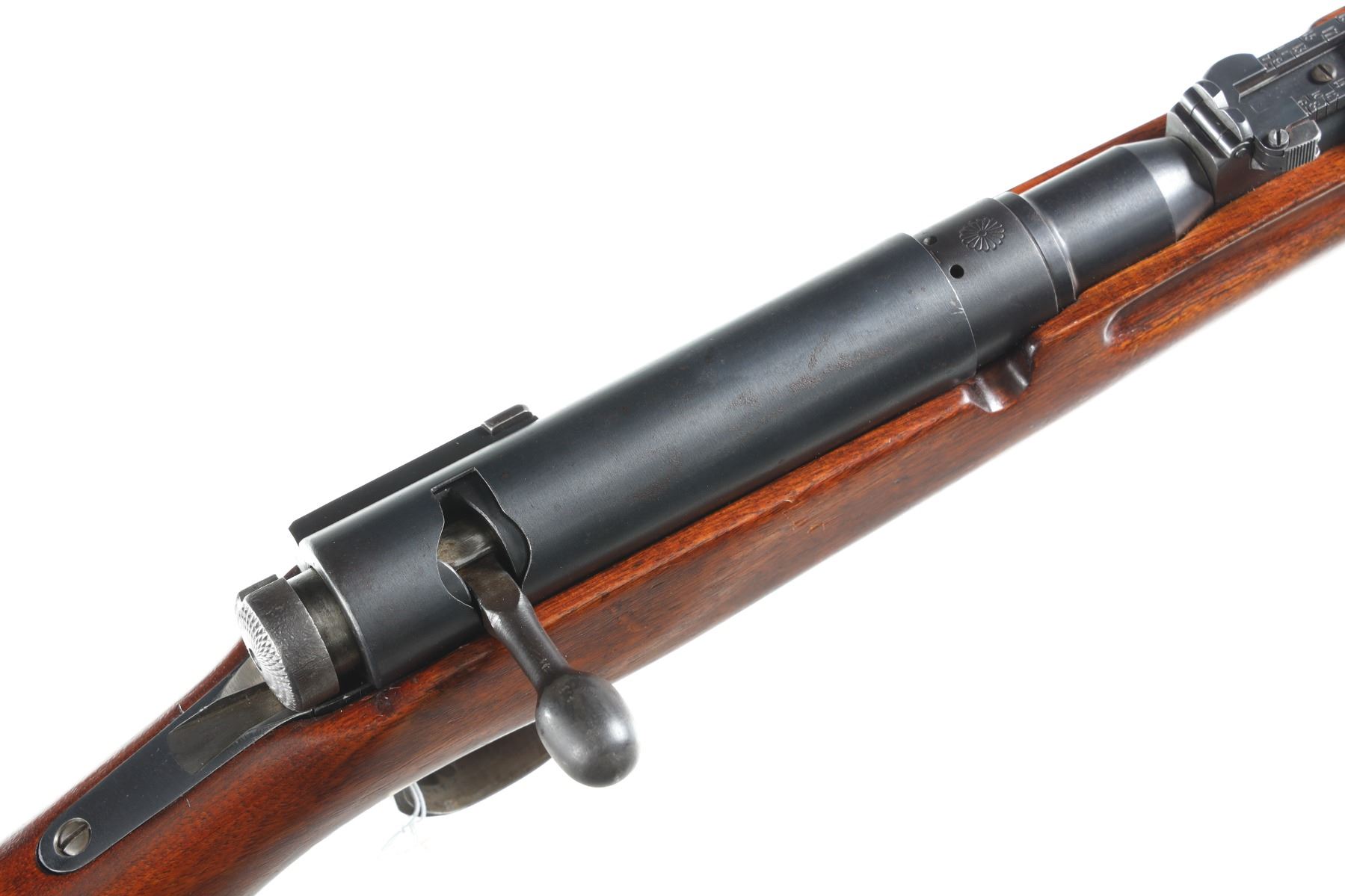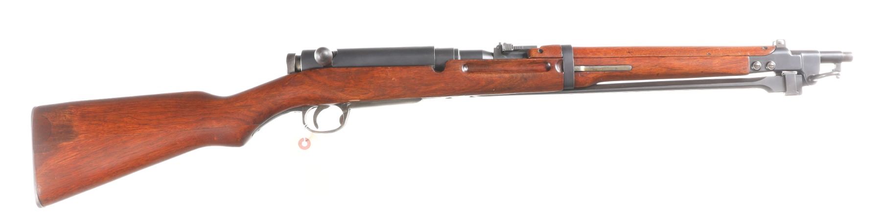 6.5mm Japanese Serial # 65382 WW2 Japanese carbine with folding spike bayonet. Near excellent overall condition, underfolding bayonet, mum intact, dust cover. Mechanically excellent.C&R Barrel 19" C&R