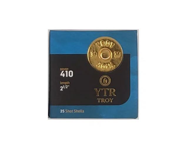 Troy 410 Gauge 2 1/2" 1/2 oz #4 (25 Rounds). This listing is for one brand new, unopened, factory sealed unit. UPC: 850046699573.