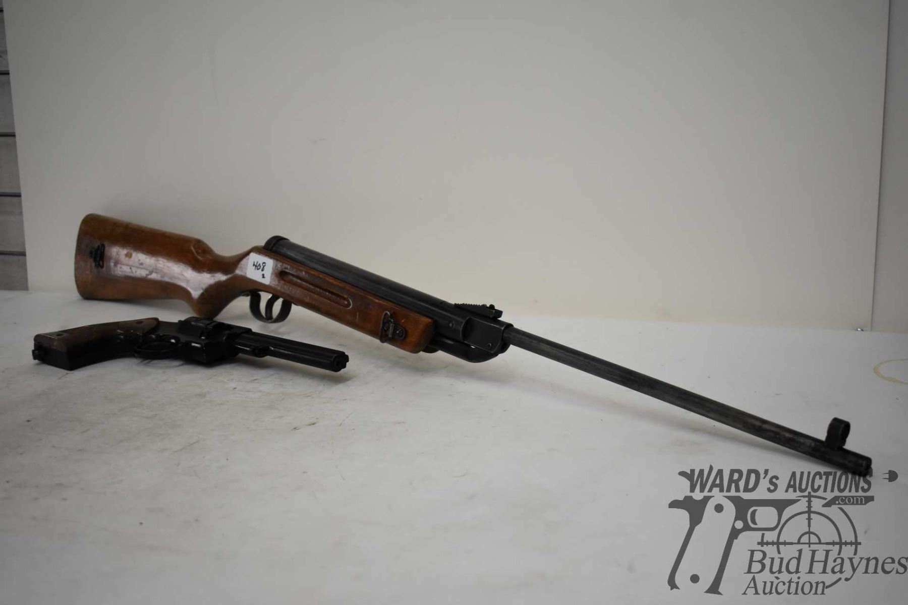 Two .177 cal pelet guns including Chinese made brake action single shot rifle and a Crosman 38T revolver w/ missing grip