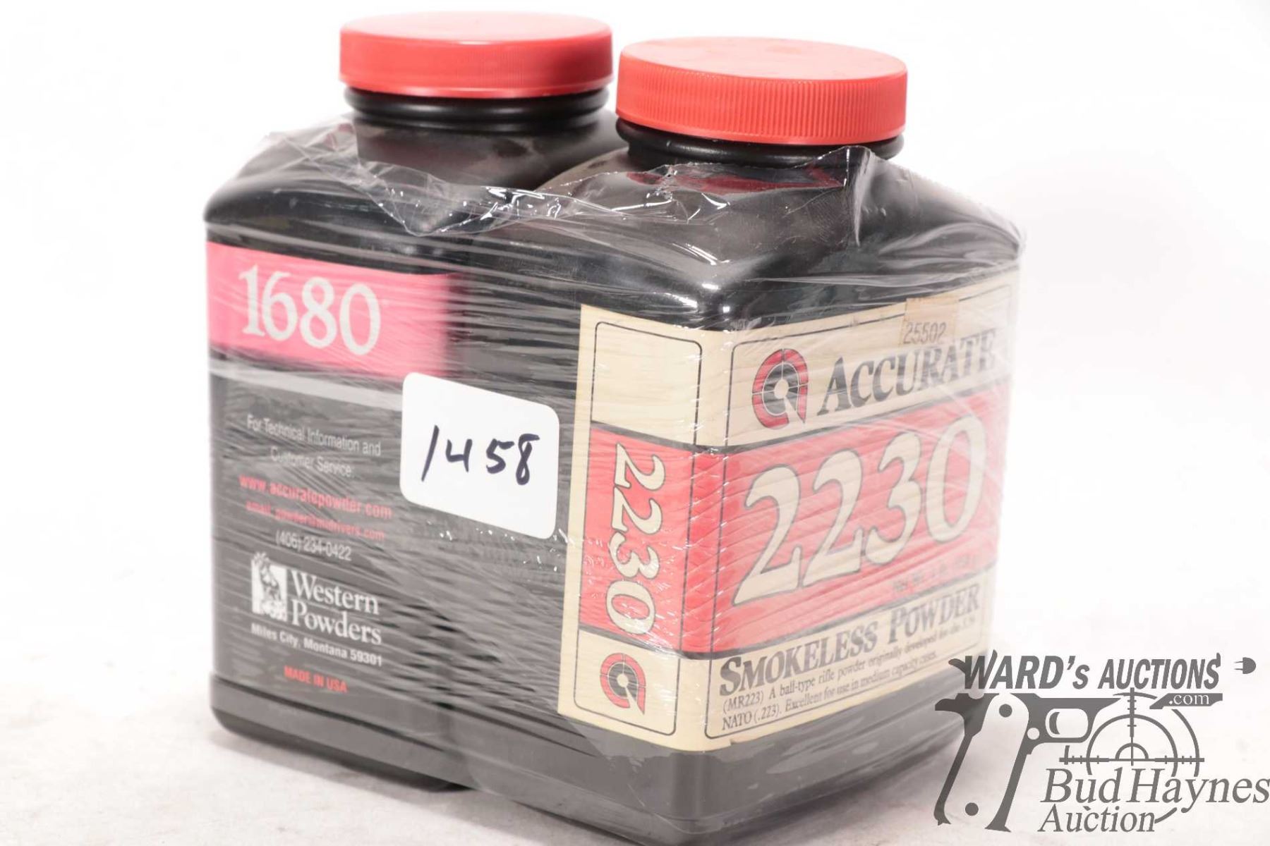 Two 1lb containers of Accurate powder including Two 1lb containers of Accurate powder including one full 1680 and 1.6 2230