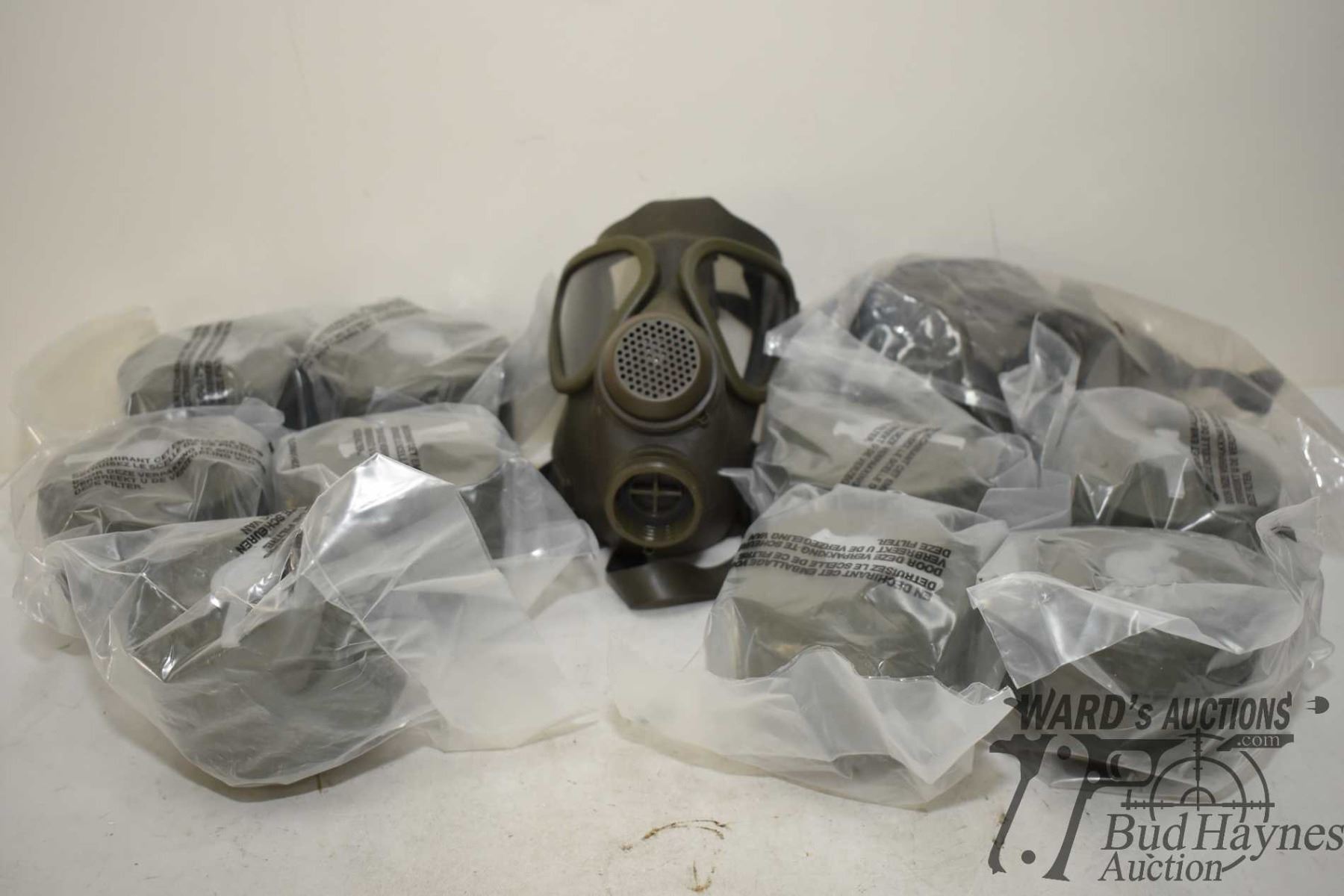 Two German gas masks and nine filters