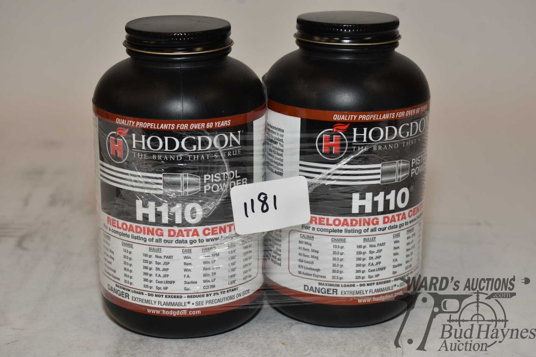 Two full 1 lb containers of Hodgdon H110 pistol powder
